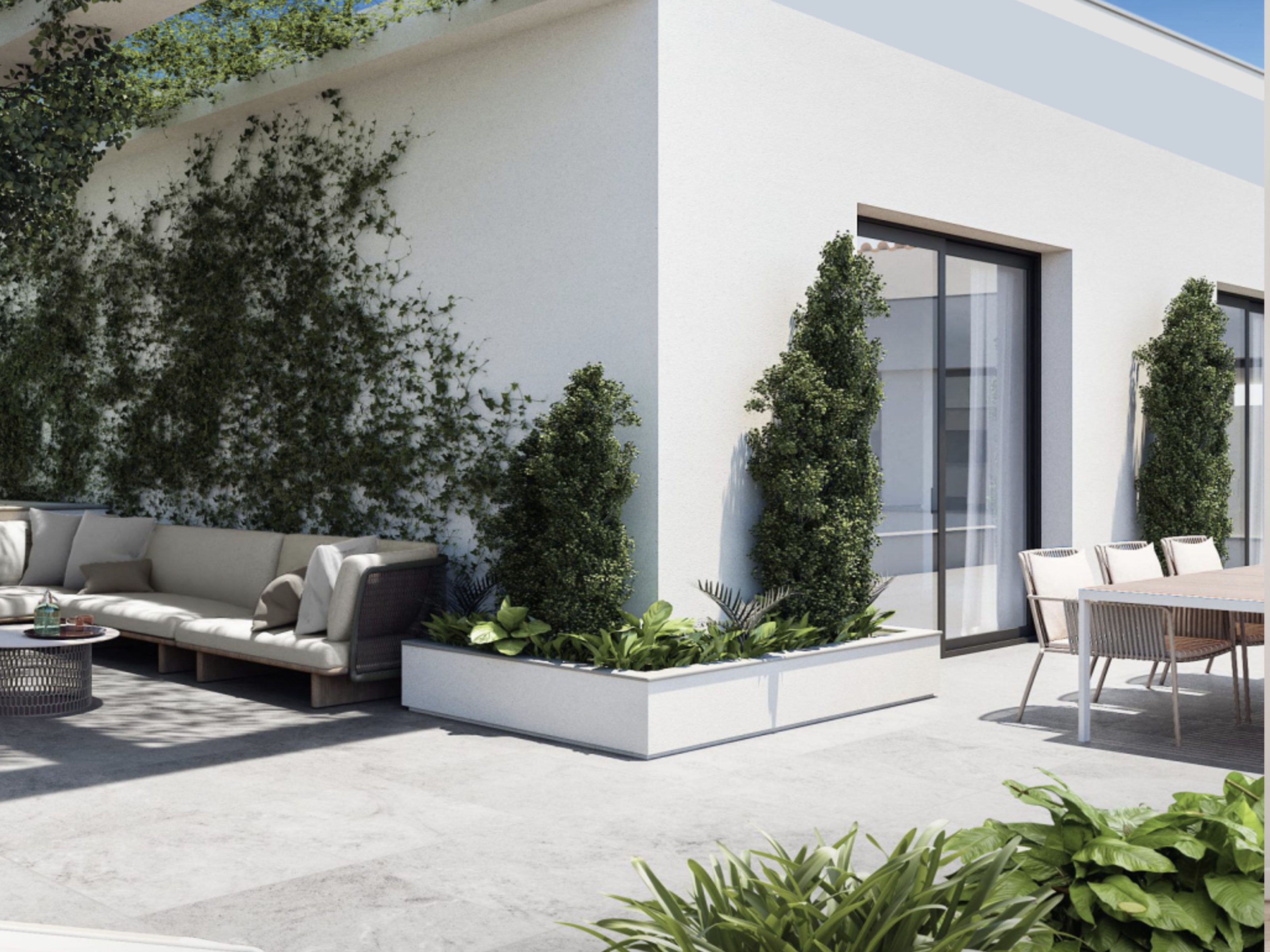 The exteriors of these properties in Torrevieja are designed to complement the natural surroundings and offer a relaxing outdoor space. The terraces, present in all units, provide a perfect space to enjoy the sea views and the Mediterranean climate. The proximity to the sea, just 450 meters away, allows residents to enjoy morning walks on the beach or water activities. The modern and elegant architecture of the properties blends seamlessly with the landscape, offering a welcoming and sophisticated environment. Additionally, the strategic location allows easy access to local amenities, making daily life comfortable and pleasant. The combination of panoramic views and proximity to the sea makes these properties an ideal choice for those who value contact with nature and the outdoors.