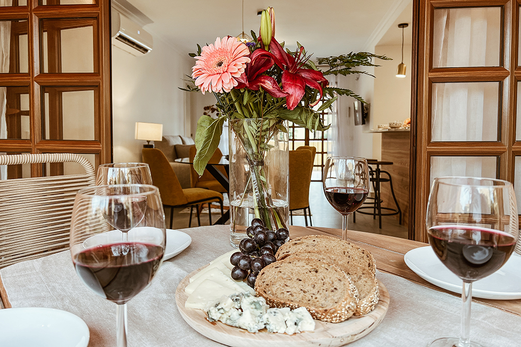 The interiors of the apartments are equipped with porcelain tile floors, adding a touch of elegance and easy maintenance. Comfort is ensured with the installation of air conditioning and modern appliances in each unit. Built-in wardrobes offer efficient storage, keeping spaces tidy and functional. The layout of the apartments is designed to maximize comfort, with spacious living areas and well-proportioned bedrooms.
