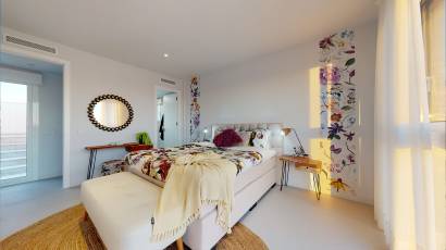 The exteriors of these homes in Mutxamel are designed to maximize enjoyment of the Mediterranean climate. Each property features a private garden, perfect for creating a personal oasis of tranquility. The terraces offer additional outdoor space, ideal for al fresco dining or simply relaxing while enjoying sea views. Additionally, each home has a private pool, providing a refreshing place to enjoy during warm summer days. The solarium is another highlight, offering an elevated space for sunbathing with total privacy.