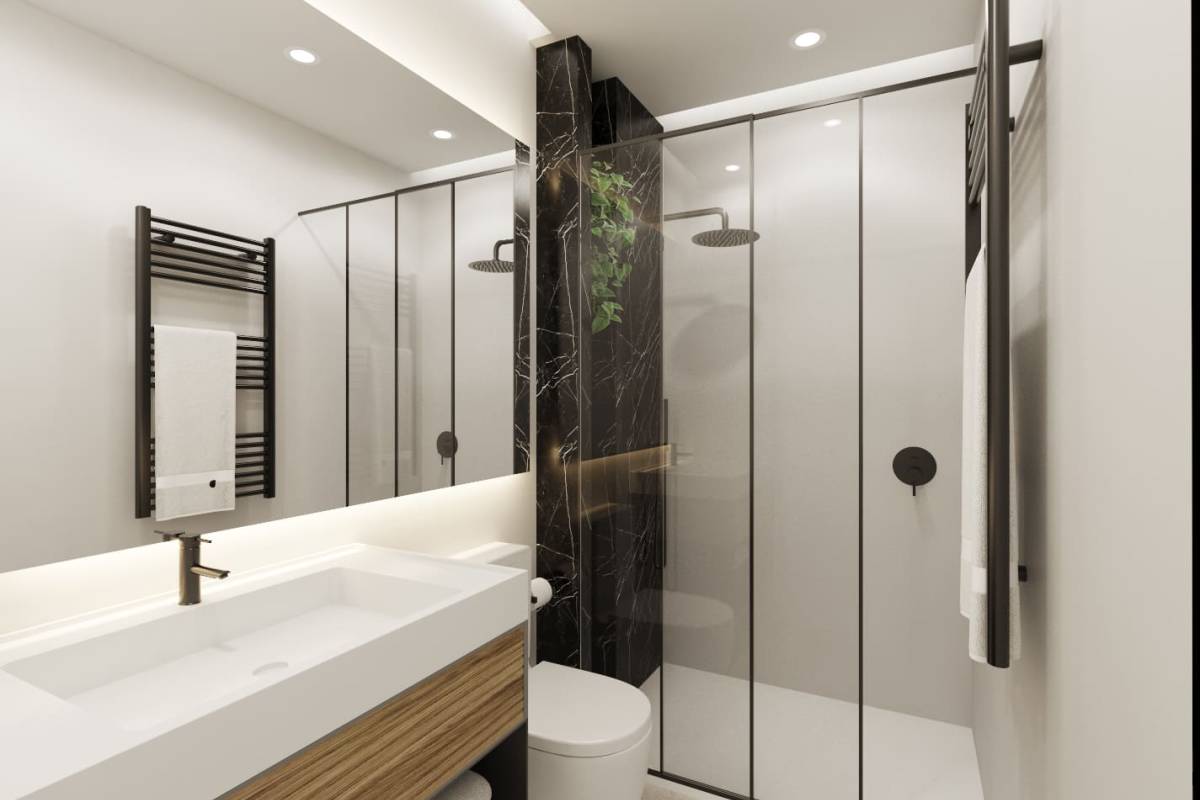 The residences are equipped with a range of features that ensure a high level of comfort. All properties come furnished and feature ceramic floors, providing a modern touch and easy maintenance. Climate control is assured with air conditioning and additional pre-installation, while electric shutters and the video intercom add extra convenience and security. Built-in wardrobes optimize storage space, and the included appliances make daily life easier.