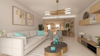 The homes are equipped with high-quality features that ensure maximum comfort. Porcelain tile floors add a touch of elegance and are easy to maintain. Electric shutters and air conditioning ensure a pleasant indoor environment year-round. Kitchens are fully equipped with modern appliances, facilitating daily life. Built-in wardrobes offer ample storage space, maintaining order and functionality in every room. Layout options include 2 and 3-bedroom homes, all with 2 bathrooms, adapting to different family needs.