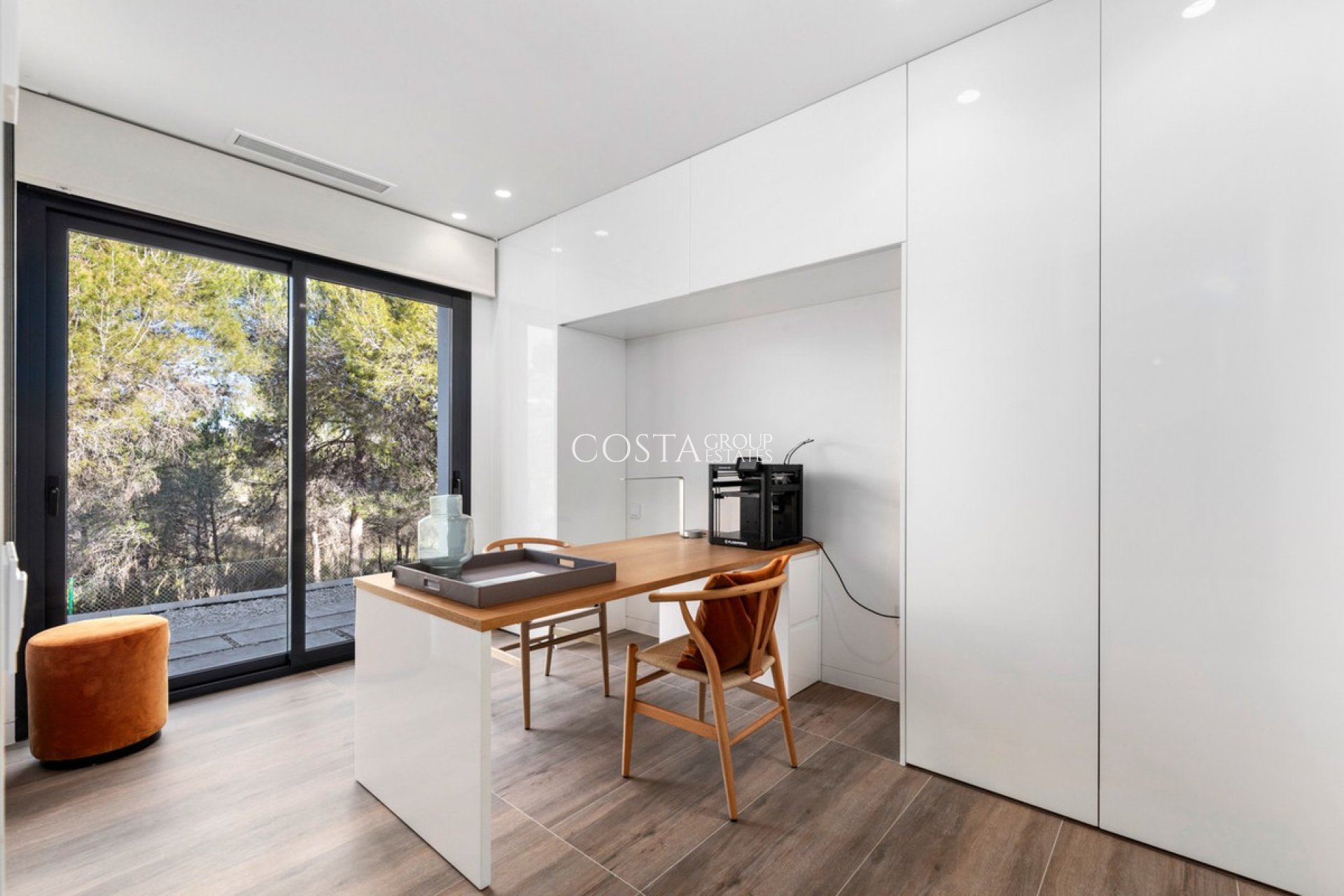 Nestled within the prestigious Las Colinas Golf & Country Club, one of the most exclusive golf resorts on the Costa Blanca, this breathtaking villa offers a unique blend of luxury, comfort, and nature. With its refined architecture and high-end finishes, this home provides everything you need for a carefree and stylish life under the Spanish sun. Upon entering, you are welcomed into a spacious and bright living area, where large windows offer stunning views of the surrounding landscape. The open-plan kitchen, fully equipped with modern built-in appliances, serves as the heart of the home and seamlessly flows into the elegant living room. Here, you can relax and enjoy cozy evenings in an atmosphere of pure sophistication. The villa features four generously sized bedrooms, including a master suite on the ground floor with its own en-suite bathroom, providing extra privacy and convenience. Additionally, there is a separate guest toilet on this level. On the lower floor, you will find three more spacious bedrooms, all with breathtaking views of the natural garden. Large windows allow natural light to flood the space, bringing the outdoors inside. This floor also houses two stylish bathrooms and a separate laundry room, combining practicality with modern elegance. The outdoor spaces are just as impressive as the interior. The beautifully landscaped garden offers a tranquil oasis where you can unwind, surrounded by the natural beauty of the resort. The heated private pool invites you for a refreshing dip at any time of the day, while the spacious terraces provide the perfect setting for long summer evenings of relaxation and entertainment. This villa is equipped with the latest technology, including an advanced home automation system, allowing you to effortlessly control lighting, temperature, and security. The Airzone climate system ensures perfect indoor comfort in every room, while the automatic shutters provide additional convenience and privacy. Additionally, solar panels contribute to an energy-efficient and sustainable living experience. For your convenience, the property offers private parking for two cars, ensuring a secure and comfortable place for your vehicles. Moreover, this exclusive villa comes fully furnished with luxury furniture worth €30,000 – everything is meticulously designed and ready for you to move in. Living in Las Colinas Golf & Country Club means embracing an exceptional lifestyle. This exclusive resort not only boasts an award-winning golf course but also offers a range of luxury amenities, including sports facilities, fine dining restaurants, and a secure residential environment. Furthermore, the stunning sandy beaches of the Costa Blanca are just a short drive away. Are you looking for a dream home where luxury, nature, and exclusivity come together? Then this villa in Las Colinas is the perfect choice. Contact us today for a viewing and experience this extraordinary living opportunity.