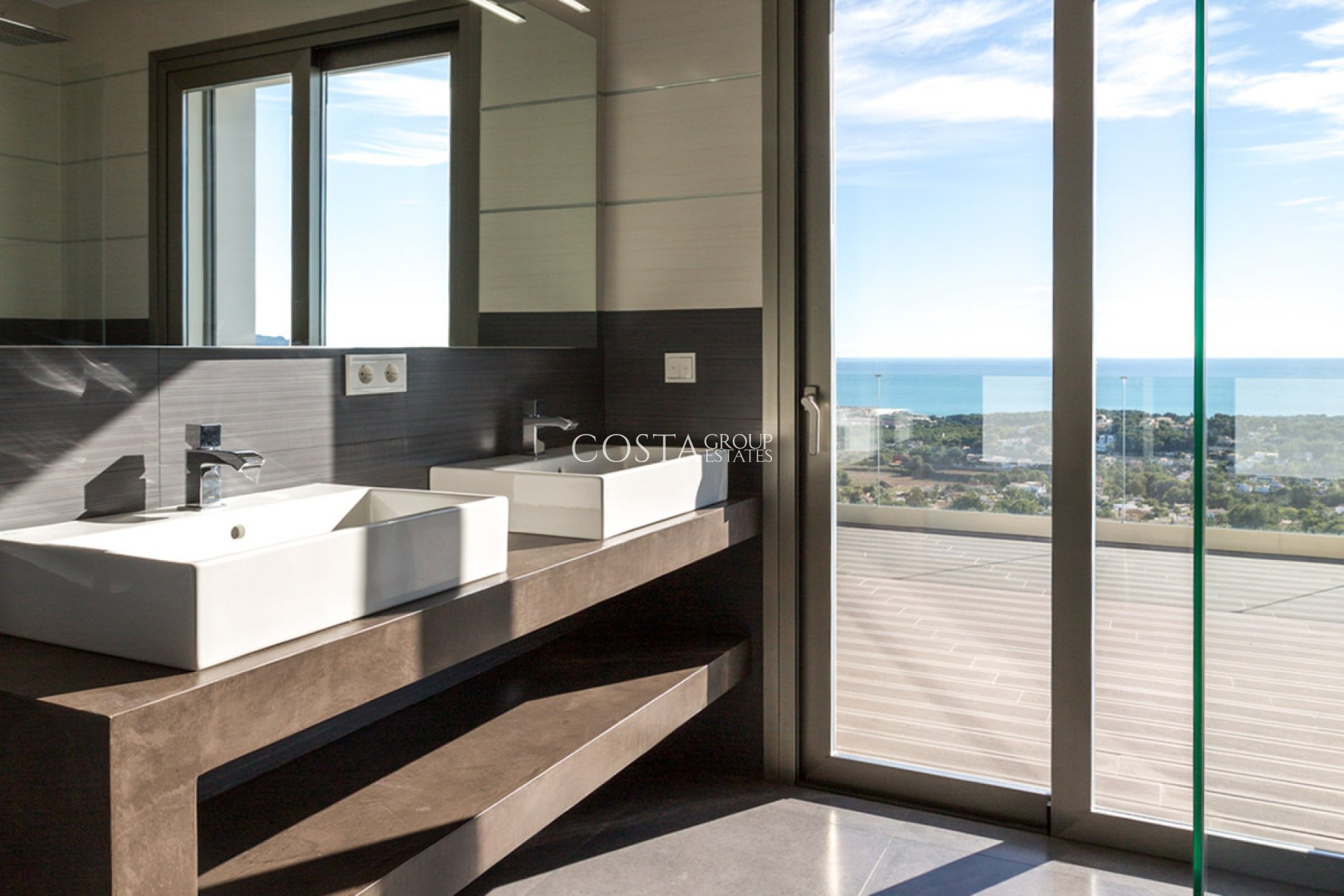 This exclusive modern-style villa stands on a plot of over 900 m², facing south to enjoy all-day sunshine and stunning open views of the Mediterranean Sea. With over 400 m² of living space and 480 m² of terraces, the property perfectly combines contemporary design, comfort, and elegance. The main floor houses a spacious and bright living-dining room with a fireplace, which flows seamlessly into an open and integrated professional kitchen, designed for both everyday use and socializing. From this floor, there is direct access to the spectacular main terrace, where the double-sided infinity pool visually blends with the sea horizon. On this same level, there is an en-suite bedroom with a dressing room, which also enjoys direct access to the terrace and sea views, offering an intimate and serene setting. Downstairs, the villa features three elegant en-suite bedrooms, all opening onto a spacious terrace. This level also houses a spacious open-plan room, ideal as a gym, study, or recreation room, and an exclusive spa area with a glass-enclosed sauna and access to a terrace with an outdoor jacuzzi, creating a perfect space for relaxation and well-being. The rooftop terrace is a true haven of pleasure and relaxation. There, owners can enjoy a hydromassage area, a decorative waterfall, sun loungers, and elegant chill-out furniture, all accompanied by a professional outdoor kitchen with a bar and counter, a guest toilet, and a large shaded area that invites you to enjoy the surroundings in total comfort and privacy. The home is equipped with solar-powered underfloor heating and a heat pump, air conditioning in all rooms, custom-designed interior fittings, a surveillance and alarm system, an electric gate, a garage, and a fully fenced perimeter wall, ensuring maximum security and privacy. Located in Moraira, one of the most exclusive enclaves on the Costa Blanca, this villa is just minutes from the center and its charming coves with crystal-clear waters. Moraira combines the charm of an old fishing village with first-class cuisine, a marina, boutiques, and an unparalleled quality of life. A privileged location where the sea, luxury, and tranquility coexist in perfect harmony.