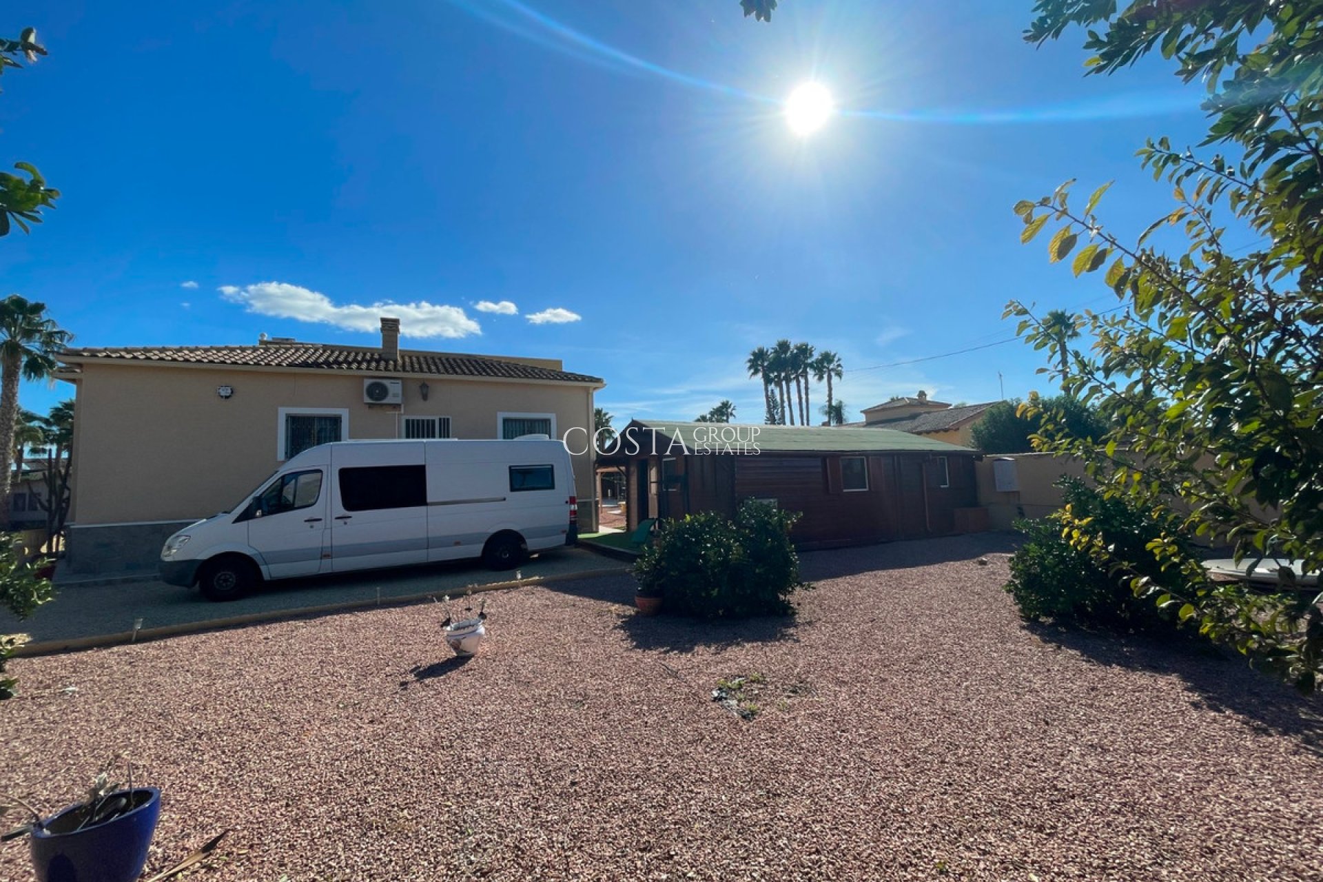 Detached villa in Catral – 239 m² built on a plot of over 2,100 m²Discover this charming home with all the comfort and space you need. The main house features 3 bedrooms, one of them en suite, 2 full bathrooms, an independent kitchen, a spacious living room, and a separate dining area. It also includes a glazed terrace, perfect for enjoying the sunshine even on cooler days. On the same plot, there is a cozy 45 m² wooden guest house with 1 bedroom, bathroom, kitchen, and living room — ideal for guests or a family member who wants their own space.Outdoors, you'll find the perfect setting to enjoy life outside:Garden with two storage sheds,Private pool with a shaded chill-out area, and plenty of space to relax or spend time with family. Located in Catral, this property has been built for over 20 years, connected to water and electricity, and paying SUMA taxes (350€/year) . Important: It does not have a habitation certificate, but it can be lived in without any problem.A unique opportunity for those seeking space, independence, and tranquility in a natural setting.