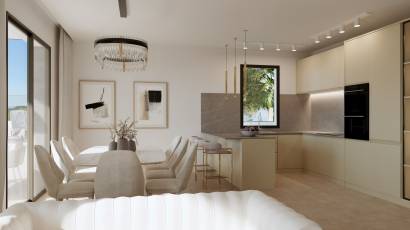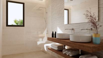 L'intérieur de la villa est conçu pour offrir un maximum de confort et de fonctionnalité. Elle dispose de quatre chambres, chacune équipée de placards intégrés optimisant l'espace de rangement. Les quatre salles de bains assurent confort et intimité pour tous les membres de la famille. La villa est équipée de sols en grès cérame, apportant élégance et durabilité. La climatisation est garantie grâce au système de climatisation et de chauffage par le sol, assurant une température agréable toute l'année. De plus, la villa dispose d'un système de domotique permettant de contrôler efficacement diverses fonctions de la maison. La cuisine est équipée d'appareils modernes, facilitant les tâches quotidiennes et apportant une touche de sophistication à l'espace.