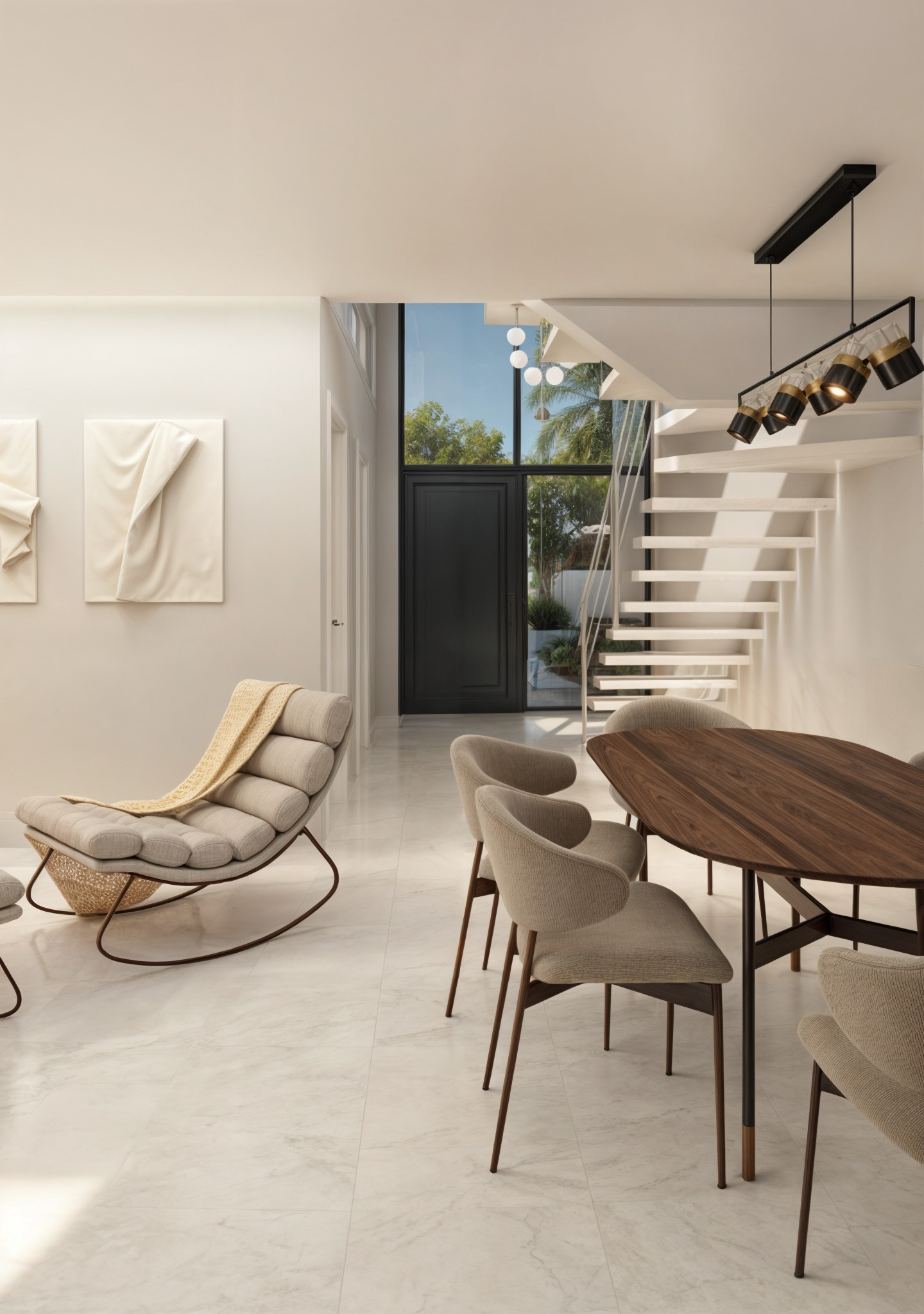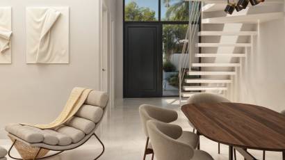 L'intérieur de ces maisons mitoyennes est soigneusement conçu pour offrir une ambiance chaleureuse et fonctionnelle. Avec une disposition comprenant trois chambres et trois salles de bains, chaque espace est optimisé pour le confort des résidents. Les sols en grès cérame apportent une touche d'élégance et sont faciles à entretenir. L'inclusion d'appareils modernes et de placards intégrés garantit que chaque maison est prête à être habitée avec toutes les commodités nécessaires. De plus, l'interphone vidéo offre une sécurité et un confort supplémentaires, permettant de contrôler efficacement l'accès à la maison.