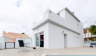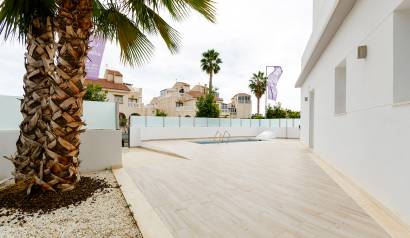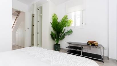 Les extérieurs de ces maisons mitoyennes à Torrevieja sont conçus pour maximiser le plaisir du climat méditerranéen. Chaque logement dispose d'une terrasse privée, parfaite pour se détendre en plein air ou profiter de repas en famille. De plus, il est possible d'inclure un solarium, idéal pour ceux qui souhaitent un espace supplémentaire pour bronzer ou créer une zone de détente personnalisée. La présence d'une piscine privée dans chaque maison mitoyenne ajoute une touche de luxe et d'exclusivité, permettant de se rafraîchir lors des journées les plus chaudes sans quitter la maison. Les volets roulants électriques installés sur les fenêtres extérieures offrent confort et sécurité, permettant de régler facilement l'entrée de la lumière.