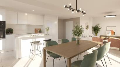 L'intérieur des logements est conçu avec un accent sur la qualité et le confort. Les sols en grès cérame apportent une touche d'élégance et de durabilité, tandis que les appareils électroménagers intégrés facilitent la vie quotidienne. Les placards intégrés offrent des solutions de rangement efficaces, maintenant les espaces ordonnés et fonctionnels. Les logements sont disponibles en configurations de 2 et 3 chambres, avec 2 salles de bains, s'adaptant à différents besoins familiaux. La distribution inclut de vastes espaces de vie qui se connectent fluidement avec les terrasses, créant une ambiance lumineuse et accueillante. L'attention portée aux détails dans chaque élément assure un foyer où confort et style se rencontrent en parfaite harmonie.