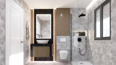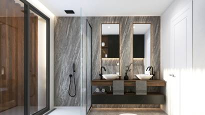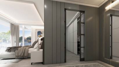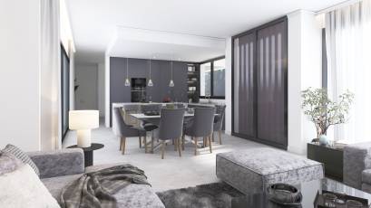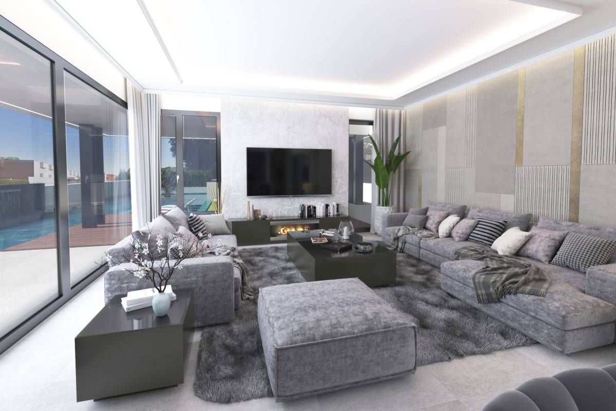 L'intérieur de la villa est soigneusement conçu pour offrir un maximum de confort et de luxe. Avec cinq chambres et cinq salles de bains, chaque espace est pensé pour fournir intimité et confort. La villa est équipée d'un système domotique qui permet de contrôler divers aspects de la maison de manière efficace. Les sols en grès cérame apportent une touche de sophistication et sont faciles à entretenir. De plus, elle dispose d'appareils électroménagers haut de gamme, de placards intégrés et d'un interphone vidéo qui garantit sécurité et confort. Le garage privé ajoute un niveau supplémentaire de commodité pour les résidents.
