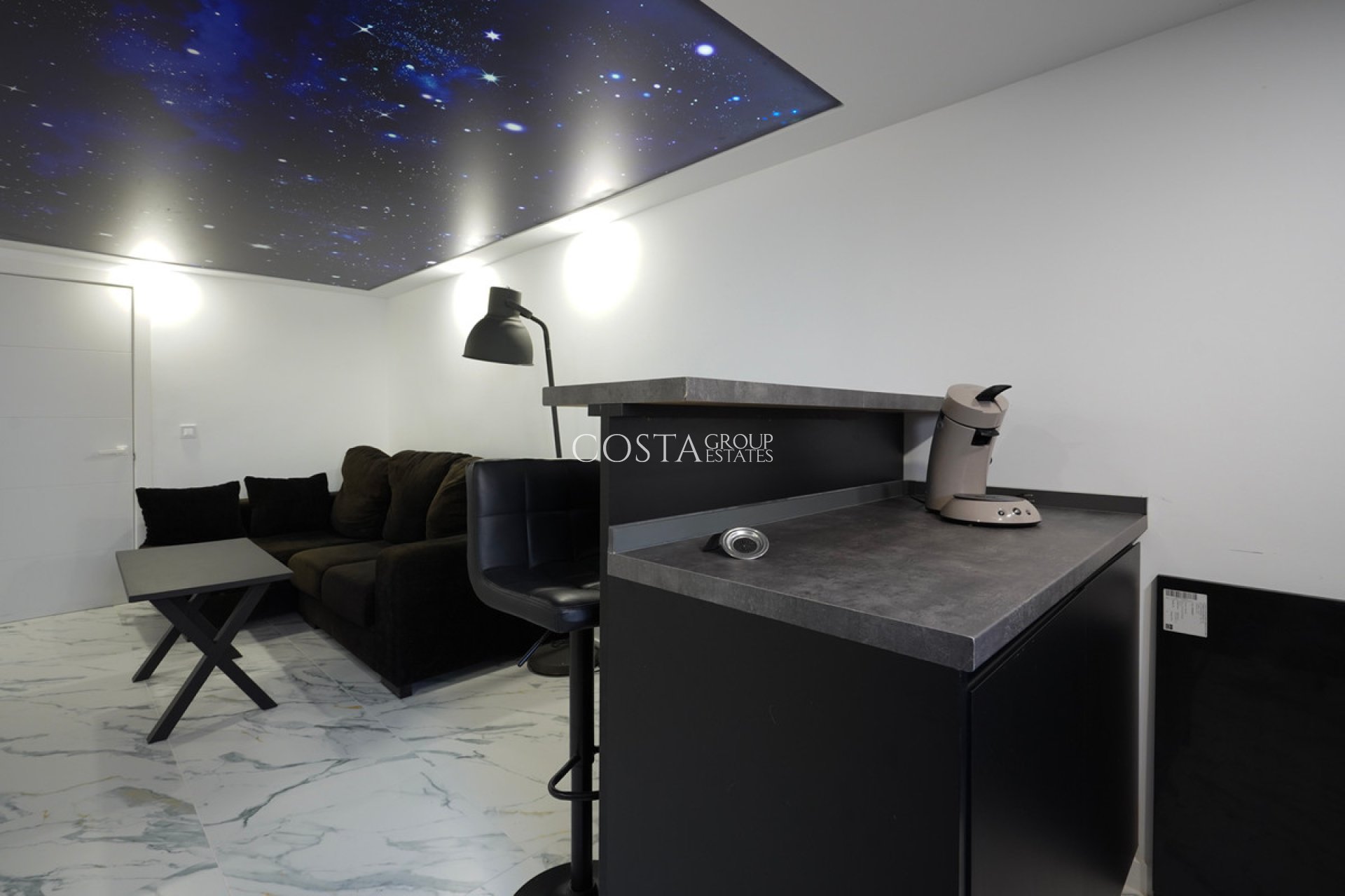 Villa rénovée avec maison d'amis à 500 m de la plage Cette villa récemment rénovée de 5 chambres est située dans une urbanisation tranquille, à seulement 500 mètres de la plage de sable de Calpe et à 10 minutes à pied du centre-ville. L'étage supérieur comprend un salon et une salle à manger modernes avec cheminée, une cuisine entièrement équipée, deux chambres spacieuses, un dressing et une salle de bains luxueuse avec double douche et baignoire. Le salon donne accès à une grande terrasse orientée sud offrant une vue magnifique sur Calpe et le Peñon de Ifach. La cuisine s'ouvre sur une terrasse couverte, idéale pour dîner à l'extérieur toute l'année. Le rez-de-chaussée constitue un logement d'amis totalement indépendant avec un salon, une cuisine ouverte, trois chambres et une salle de bains. Parfait pour la famille, les amis ou comme possibilité de location. Le logement d'amis est relié à la maison par l'intérieur et accessible par une entrée privée. Deux des trois chambres donnent directement accès à la terrasse près de la piscine. La villa dispose également d'un garage, actuellement aménagé en cuisine supplémentaire et espace de rangement. La maison est également équipée de la climatisation, de double vitrage (Climalit), d'un chauffe-eau solaire et d'un sauna. Dans le magnifique jardin méditerranéen avec ses palmiers et ses oliviers, vous trouverez plusieurs terrasses, des endroits ensoleillés et ombragés, ainsi qu'une grande piscine avec un espace pour s'allonger. Grâce à son orientation sud, vous pouvez profiter du soleil toute l'année. La villa est vendue meublée et prête à emménager, tant pour y vivre que pour la louer (une licence de location doit être demandée). L'emplacement est idéal, que ce soit comme investissement, résidence de vacances ou résidence permanente. Demandez dès maintenant votre visite !