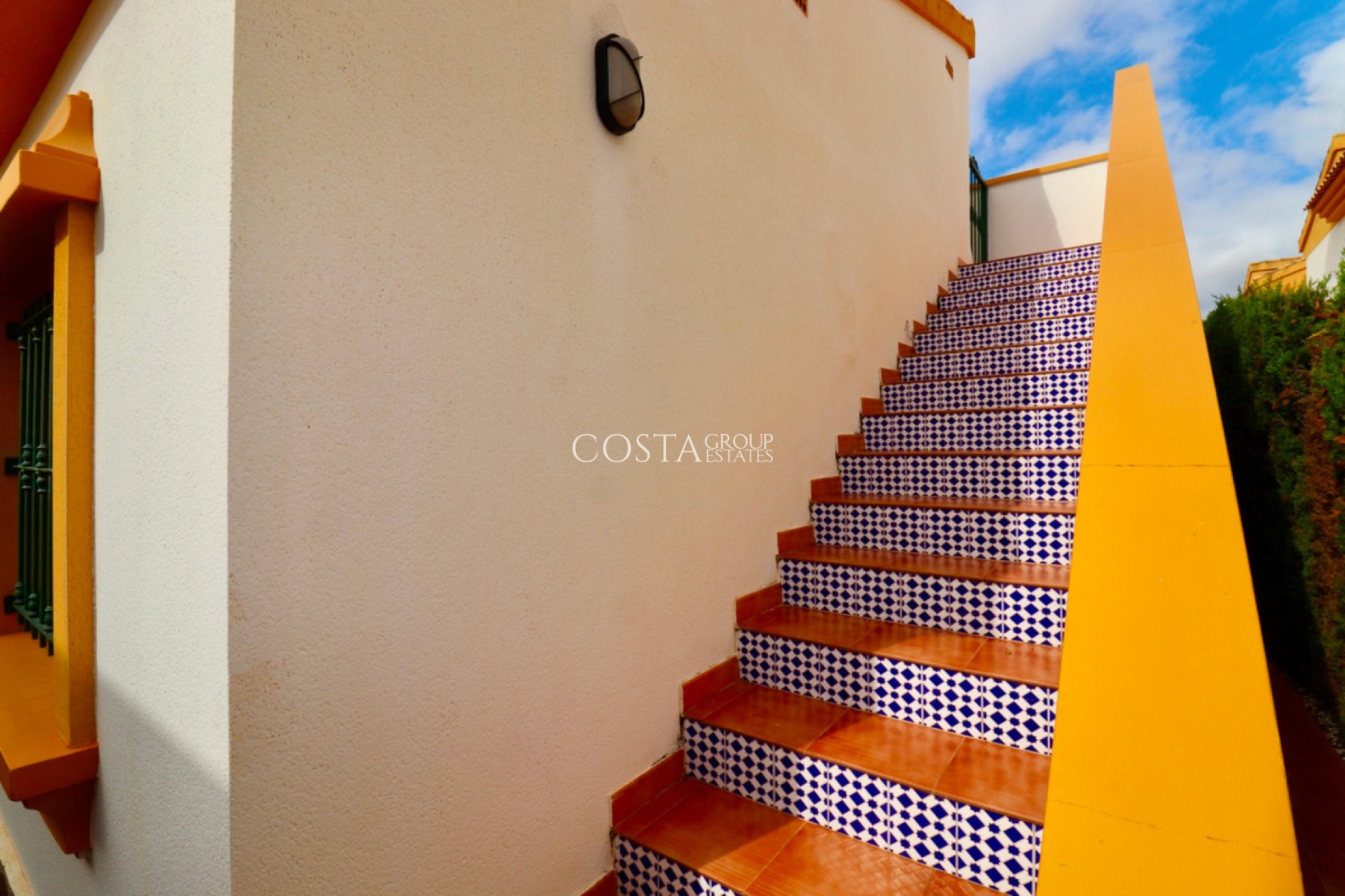 Cette villa bien entretenue bénéficie d'un emplacement privilégié : à seulement 10 minutes à pied de bars et restaurants animés et à 8 minutes en voiture de la magnifique plage de sable de Guardamar. La propriété dispose d'un vaste espace extérieur avec un coin salon confortable et une terrasse couverte, idéale pour se détendre à l'ombre. Un parking extérieur est également disponible. La villa est vendue semi-meublée et négociable. Dès l'entrée, vous découvrirez une salle à manger chaleureuse qui s'ouvre harmonieusement sur le séjour lumineux grâce à une baie vitrée ronde. La cuisine ouverte est entièrement équipée. Le couloir mène à une spacieuse chambre d'amis et à une salle de bains séparée sur la gauche. Au bout du couloir se trouve la chambre principale avec sa salle de bains attenante. Le magnifique jardin paysager, agrémenté de plantes vivaces, offre intimité et verdure. À l'arrière de la maison, vous avez accès à un très spacieux solarium de 10 x 7 mètres, pour profiter du soleil toute la journée. Ce solarium dispose également d'un local de rangement fermé, pratique pour vos affaires de plage ou vos vélos. La piscine commune se trouve à seulement 30 mètres de la maison. À côté se trouve un petit espace vert où vous pourrez jouer à la pétanque, par exemple. À propos de Guardamar del Segura : Guardamar est réputée pour ses vastes plages de sable, ses magnifiques dunes et son charmant boulevard bordé de boutiques, de restaurants et de terrasses. Le centre-ville de Guardamar est à proximité, tout comme les supermarchés, les installations sportives et la place du marché hebdomadaire. L'aéroport d'Alicante est à 30 minutes en voiture, tandis que des villes populaires comme Torrevieja (10 minutes), le boulevard La Zenia (20 minutes) et les golfs de La Marquesa et La Finca sont à quelques minutes en voiture. Cette propriété est prête à emménager et parfaite comme maison de vacances ou résidence permanente.