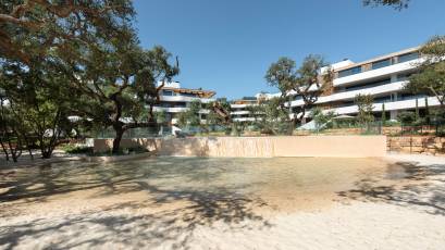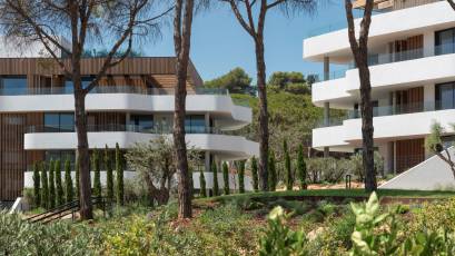 Mieszkania w tym kompleksie mieszkaniowym wyróżniają się nowoczesnym i funkcjonalnym wnętrzem. Wyposażone w podłogi z gresu porcelanowego, nieruchomości oferują eleganckie i trwałe otoczenie. Elektryczne rolety i system automatyki domowej dodają nowoczesności i wygody, umożliwiając efektywne zarządzanie domem. Klimatyzacja jest zapewniona dzięki klimatyzacji i ogrzewaniu podłogowemu, co gwarantuje komfort o każdej porze roku. Kuchnie są w pełni wyposażone w sprzęt najwyższej jakości, a wbudowane szafy zapewniają praktyczne i uporządkowane przechowywanie. Każdy detal został starannie przemyślany, aby zaoferować dom łączący styl i funkcjonalność.