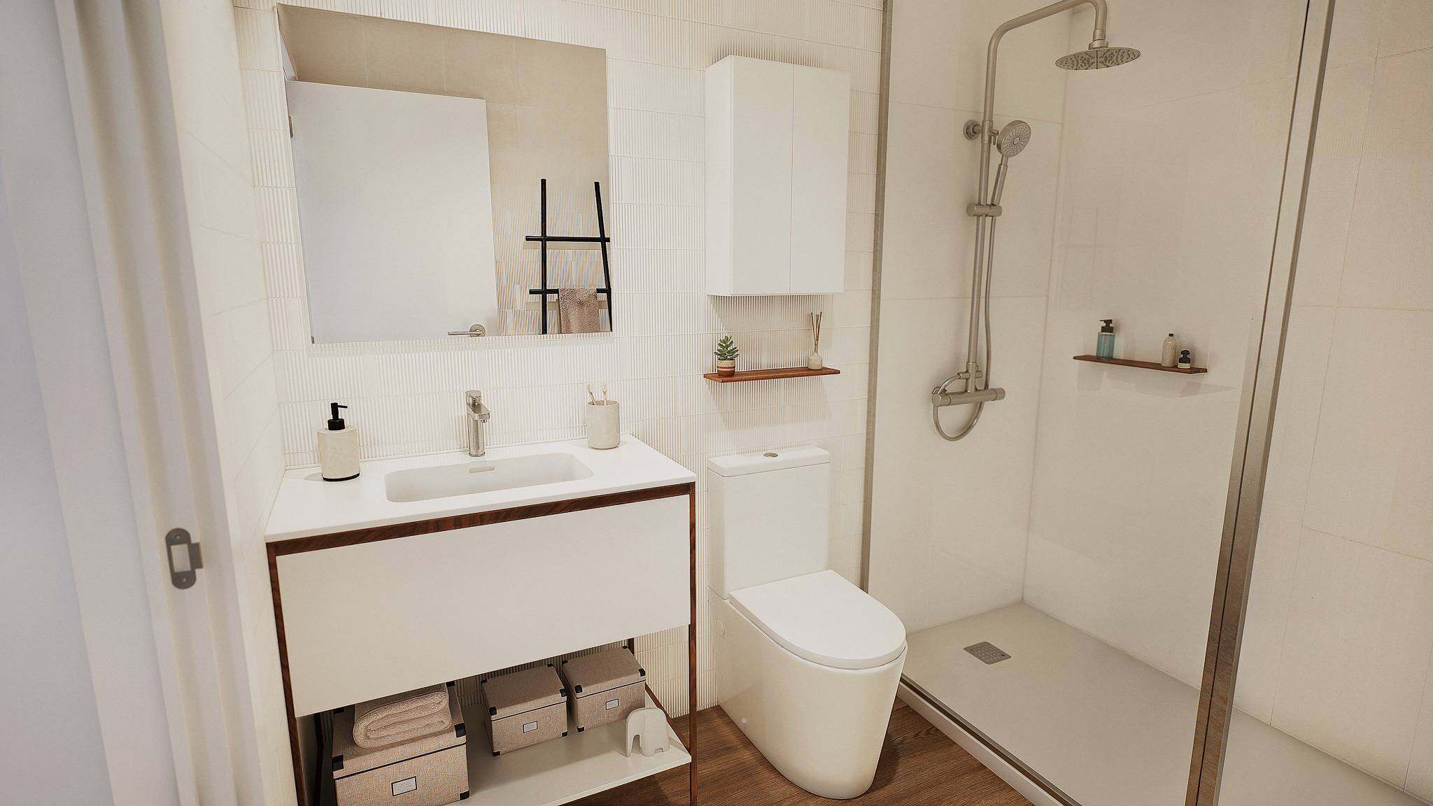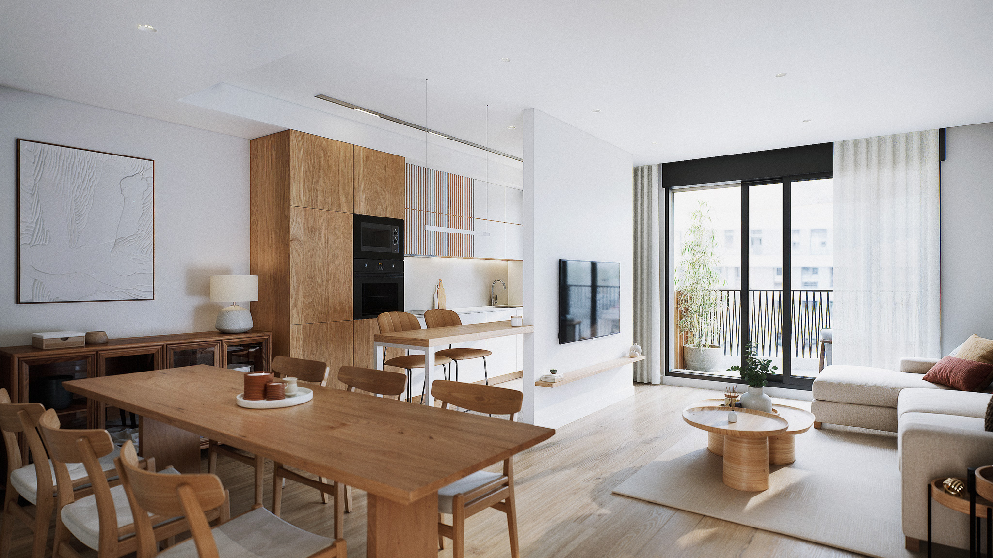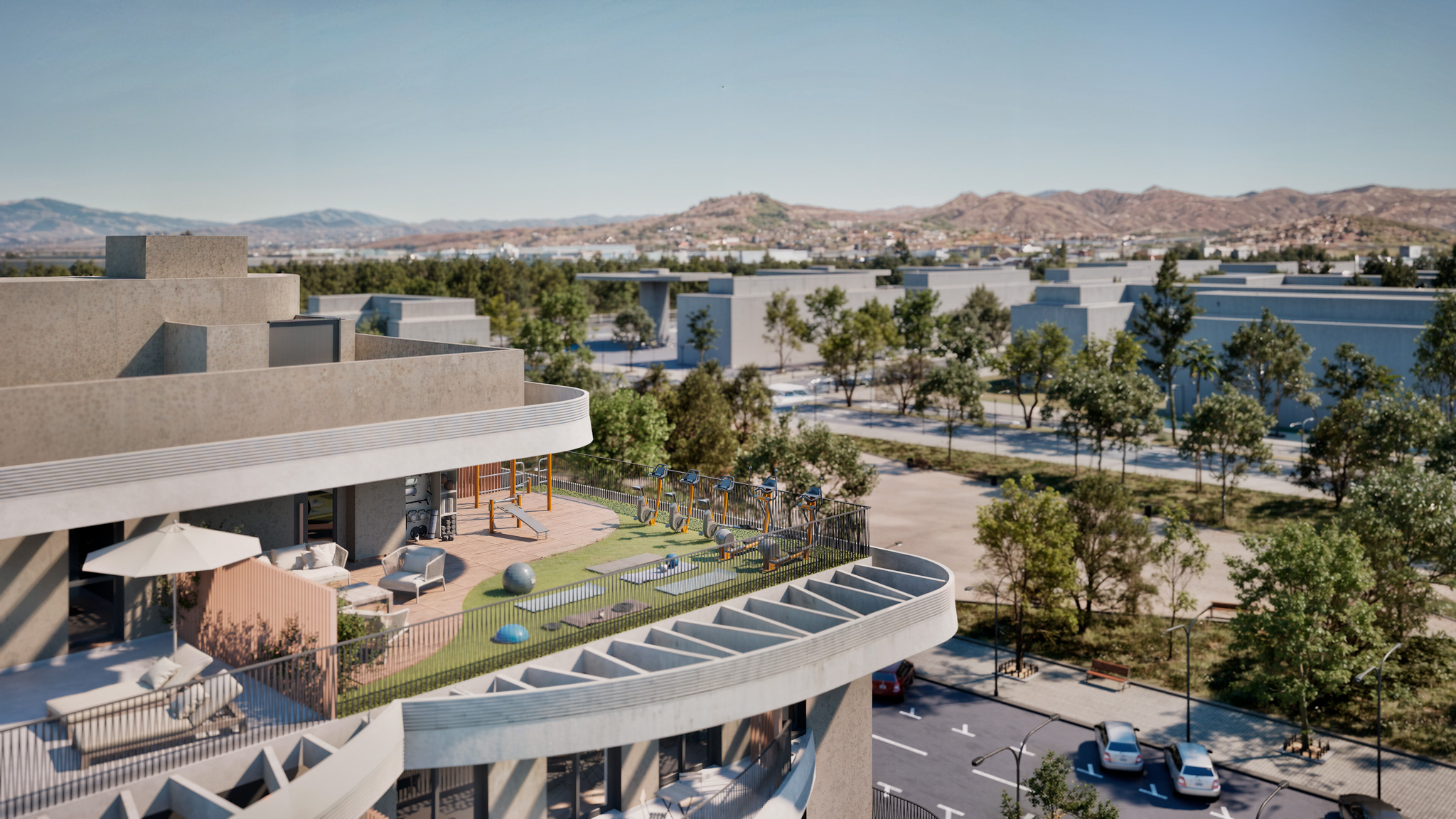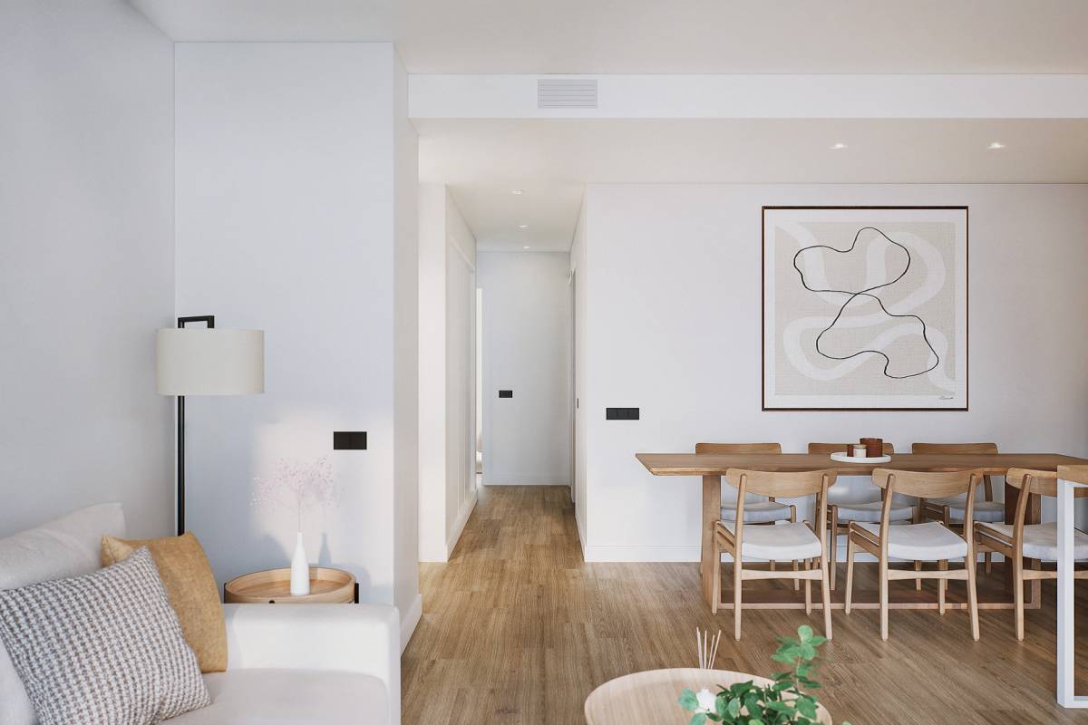 Wnętrza mieszkań wyposażone są w nowoczesne funkcje, które gwarantują komfort i funkcjonalność. Wszystkie jednostki posiadają klimatyzację, zapewniając przyjemne warunki przez cały rok. Wbudowane szafy oferują efektywne przechowywanie, utrzymując porządek i organizację w domu. Ponadto, mieszkania są wyposażone w sprzęt AGD, ułatwiając codzienne życie mieszkańców. Układ obejmuje tarasy, zapewniając dodatkową przestrzeń do korzystania z powietrza na zewnątrz z wygody domu. Opcje układu różnią się od 1 do 4 sypialni i 1 lub 2 łazienek, dostosowując się do różnych potrzeb rodzinnych.