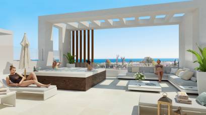 Domy szeregowe posiadają przestrzenie zewnętrzne zaprojektowane w celu maksymalizacji przyjemności z klimatu śródziemnomorskiego. Każda nieruchomość dysponuje prywatnym ogrodem, idealnym do relaksu lub spędzania czasu z rodziną. Tarasy oferują dodatkową przestrzeń na świeżym powietrzu, idealną na kolacje o zachodzie słońca lub po prostu do podziwiania widoków. Obecność prywatnego jacuzzi w każdym domu dodaje luksusu i dobrego samopoczucia, pozwalając mieszkańcom cieszyć się relaksującymi chwilami w zaciszu własnego domu.
