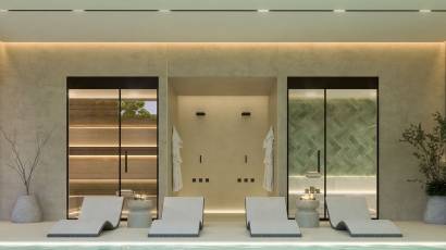 Zewnętrzne obszary tych nieruchomości zostały zaprojektowane, aby oferować przestrzeń do relaksu i przyjemności na świeżym powietrzu. Każde mieszkanie ma prywatny taras, idealny do cieszenia się śródziemnomorskim klimatem i imponującymi widokami na morze. Ponadto, mieszkania na parterze mają prywatne ogrody, zapewniając osobistą oazę spokoju. Dla tych, którzy szukają dodatkowego luksusu, niektóre nieruchomości obejmują solarium, idealne do opalania się w prywatności. Obecność prywatnego basenu w niektórych typach nieruchomości dodaje dodatkowy poziom ekskluzywności, pozwalając cieszyć się orzeźwiającą kąpielą w dowolnym momencie.