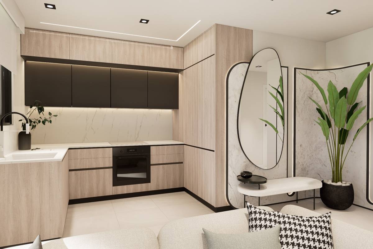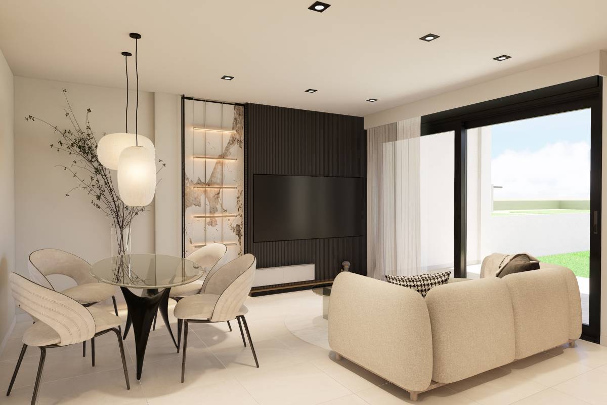 Wnętrza bungalowów zostały starannie zaprojektowane, aby zapewnić funkcjonalną i przytulną przestrzeń. Opcje układu obejmują mieszkania z 2 lub 3 sypialniami i 2 łazienkami, dostosowane do różnych potrzeb rodzinnych. Podłogi z gresu porcelanowego dodają elegancji i są łatwe w utrzymaniu. Rolety elektryczne i wbudowane szafy zapewniają komfort i praktyczność na co dzień. Preinstalacja klimatyzacji pozwala mieszkańcom dostosować klimat w domu, zapewniając przyjemne środowisko przez cały rok.