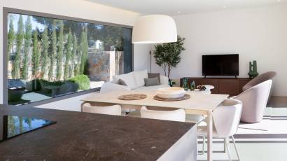 Wnętrze domów zostało zaprojektowane tak, aby oferować przytulną i nowoczesną atmosferę. Każda nieruchomość posiada trzy sypialnie i trzy łazienki, zapewniając przestronną i funkcjonalną przestrzeń dla całej rodziny. Wysokiej jakości wykończenia obejmują podłogi z gresu porcelanowego, które dodają eleganckiego wyglądu i są łatwe w utrzymaniu. Domy są w pełni umeblowane i wyposażone w sprzęt AGD, co zapewnia, że każdy detal jest dopracowany, aby oferować maksymalny komfort. Technologia odgrywa również ważną rolę, z funkcjami takimi jak automatyka domowa, klimatyzacja, ogrzewanie podłogowe, wideodomofon i rolety elektryczne, gwarantując nowoczesny i efektywny styl życia. Wbudowane szafy oferują praktyczne i stylowe rozwiązania do przechowywania, uzupełniając wnętrze, które łączy funkcjonalność i styl.