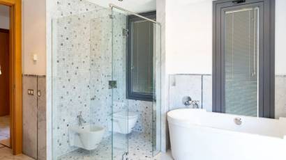 Wnętrze willi zostało zaprojektowane, aby zapewnić maksymalny komfort i funkcjonalność. Wyposażona w klimatyzację i ogrzewanie podłogowe, gwarantuje przyjemną temperaturę przez cały rok. Wbudowane szafy w sypialniach zapewniają dużo miejsca do przechowywania, utrzymując porządek i organizację. Układ obejmuje garaż, zapewniając bezpieczne miejsce do parkowania. Każdy detal wnętrza został starannie dobrany, aby stworzyć przytulną i wyrafinowaną atmosferę.