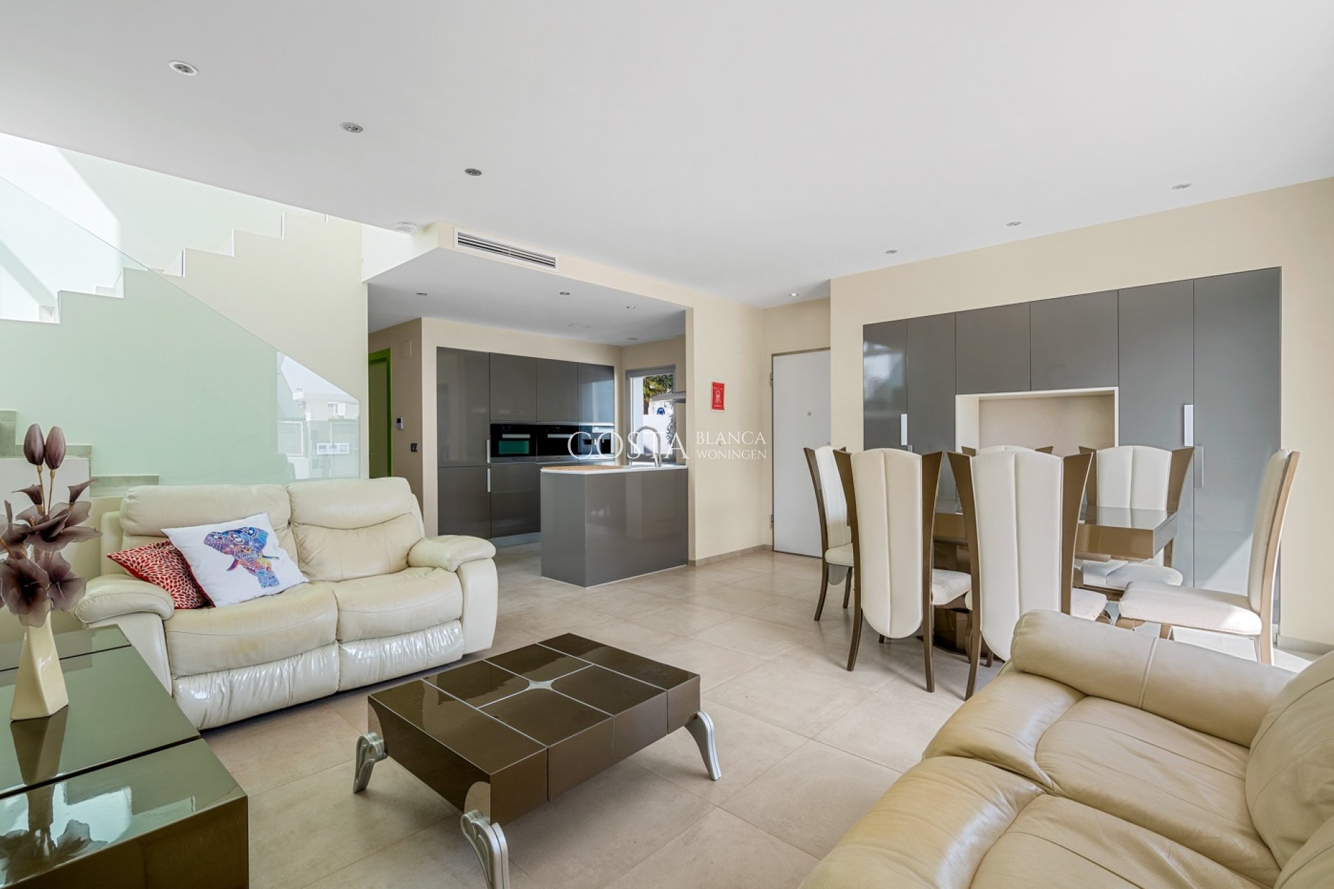 Wchodzisz do jasnego salonu z jadalnią i w pełni wyposażoną otwartą kuchnią. Na parterze znajduje się pomieszczenie gospodarcze, sypialnia z łazienką przynależną oraz osobna toaleta. Na piętrze znajdują się jeszcze 2 sypialnie i 1 łazienka, a także przestronny taras słoneczny.