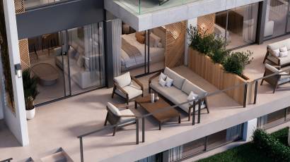 De buitenruimtes van deze residentie in Marbella zijn ontworpen om de natuurlijke omgeving aan te vullen en een ruimte voor ontspanning en plezier te bieden. Elke woning beschikt over een privéterras, perfect om te genieten van het uitzicht op zee en het mediterrane klimaat. Bovendien bevatten de penthouses een solarium, wat extra buitenruimte biedt voor recreatie en entertainment. De moderne en elegante architectuur integreert perfect met het landschap, waardoor een harmonieuze en aantrekkelijke sfeer ontstaat.