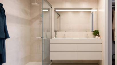 De woningen zijn uitgerust met moderne kenmerken die comfort en functionaliteit garanderen. De porseleinen tegelvloeren geven een vleugje elegantie en duurzaamheid aan de binnenruimtes. Alle woningen zijn voorzien van airconditioning, wat het hele jaar door een aangename sfeer verzekert. De huishoudelijke apparaten zijn inbegrepen, waardoor het dagelijks leven vanaf dag één wordt vergemakkelijkt. Ingebouwde kasten bieden efficiënte opslagoplossingen, terwijl de video-intercom extra veiligheid en gemak biedt.