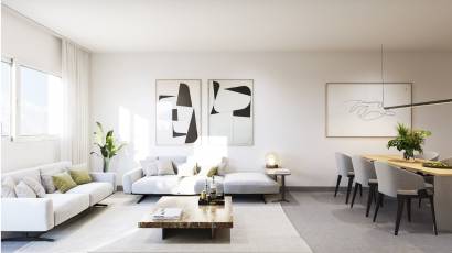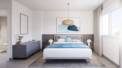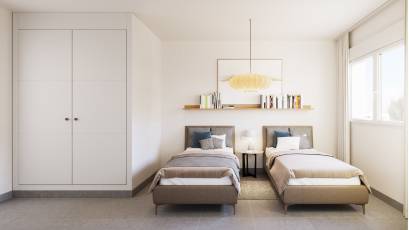De woningen van dit residentieel complex bieden moderne en functionele interieurs, met een verscheidenheid aan indelingen die opties van 1, 2 en 3 slaapkamers en 1 of 2 badkamers omvatten, aangepast aan verschillende gezinsbehoeften. De porseleinen vloeren geven een vleugje elegantie en duurzaamheid, terwijl de elektrische rolluiken en de video-intercom comfort en veiligheid toevoegen. De keukens zijn uitgerust met hoogwaardige apparatuur en de ingebouwde kasten bieden veel opbergruimte. De terrassen, aanwezig in alle typologieën, bieden extra ruimte om te genieten van het mediterrane klimaat en het uitzicht op zee.