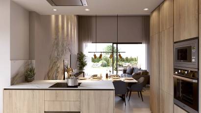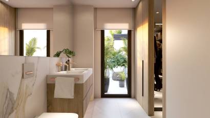 Het interieur van de villa's is ontworpen om maximaal comfort en stijl te bieden. Elke villa beschikt over drie slaapkamers en vier badkamers, wat ruimte en privacy voor alle gezinsleden garandeert. De villa's zijn uitgerust met airconditioning, wat het hele jaar door een aangename sfeer garandeert. Elektrische rolluiken en ingebouwde kasten zijn standaardkenmerken die comfort en functionaliteit bieden. Bovendien beschikt elke villa over een garage, die een veilige parkeerplaats biedt. Het solarium is een extra ruimte die het mogelijk maakt om van het uitzicht en de zon te genieten in een privéomgeving.