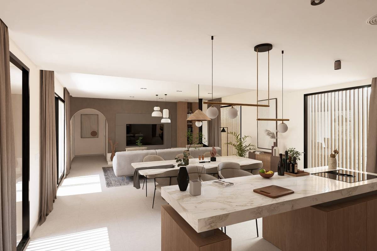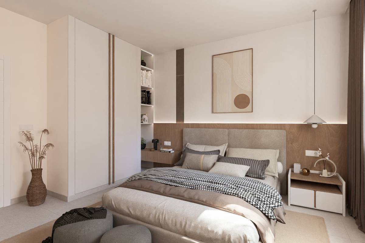 De interieurs van deze vrijstaande woningen zijn zorgvuldig ontworpen om maximaal comfort en moderniteit te bieden. De porseleinen tegelvloer voegt een vleugje verfijning en duurzaamheid toe aan de ruimtes. De eigendommen zijn uitgerust met moderne huishoudelijke apparaten en een domoticasysteem dat het beheer van verschillende functies van het huis vergemakkelijkt. Ingebouwde kasten optimaliseren de opslagruimte, terwijl vloerverwarming zorgt voor een warme en gezellige sfeer tijdens de koudere maanden. De indeling van de woningen, met opties van 2 tot 4 slaapkamers en 2 tot 3 badkamers, maakt personalisatie mogelijk volgens de voorkeuren van elk gezin.