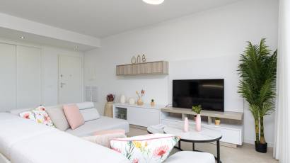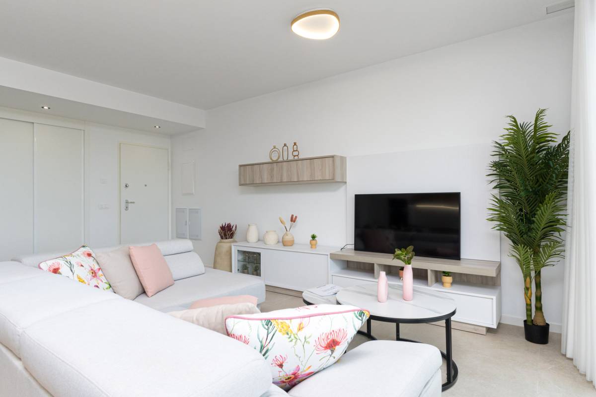 Het interieur van de woningen is ontworpen met een focus op comfort en moderniteit. De indelingsopties omvatten woningen met 2 en 3 slaapkamers, allemaal met 2 badkamers, wat voldoende ruimte biedt voor gezinnen van verschillende groottes. Hoogwaardige afwerkingen omvatten keramische vloeren en porseleinen tegels, die niet alleen esthetisch aantrekkelijk maar ook duurzaam zijn. De woningen zijn uitgerust met domotica, elektrische rolluiken en een video-intercom, wat een moderne en veilige levensstijl vergemakkelijkt. Bovendien beschikken ze over vloerverwarming, ingebouwde kasten en geïntegreerde apparaten, zodat elk detail is doordacht voor dagelijks comfort.