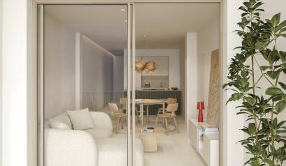 De interieurs van de woningen zijn uitgerust met moderne kenmerken die comfort en efficiëntie garanderen. Alle eigendommen zijn voorzien van elektrische rolluiken, waardoor het licht en de privacy eenvoudig te regelen zijn. De pre-installatie van airconditioning zorgt ervoor dat bewoners het hele jaar door kunnen genieten van een koele en comfortabele omgeving. Bovendien zijn de woningen uitgerust met huishoudelijke apparaten, wat een praktische en instapklare oplossing biedt. De interne indeling omvat opties van twee of drie slaapkamers, allemaal met twee badkamers, wat voldoende ruimte biedt voor gezinnen van verschillende groottes. De ruime terrassen verbinden het interieur met het exterieur, waardoor er een natuurlijke stroom van licht en lucht ontstaat.