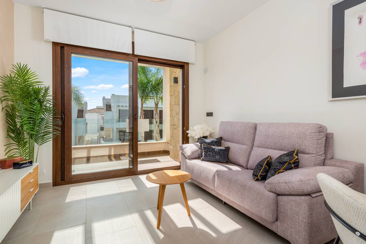 Het interieur van de woningen is ontworpen om comfort en stijl te bieden. Alle eigendommen zijn gemeubileerd, wat de verhuizing vergemakkelijkt en het mogelijk maakt om vanaf dag één van de ruimte te genieten. De keramische vloeren geven een moderne uitstraling en zijn gemakkelijk te onderhouden. Elektrische rolluiken en inbegrepen apparaten zijn kenmerken die dagelijks comfort toevoegen. Ingebouwde kasten bieden efficiënte opslag, terwijl de pre-installatie van airconditioning ervoor zorgt dat het huis klaar is voor elk klimaat.
