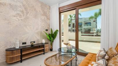 De buitenruimtes van deze eigendommen zijn ontworpen om optimaal te genieten van het mediterrane klimaat. Elke woning heeft een privéterras, ideaal om buiten te ontspannen. Bovendien beschikken de bungalows over een solarium, perfect om in de privacy van je eigen huis van de zon te genieten. De aanwezigheid van een pergola voegt een vleugje elegantie en functionaliteit toe, door schaduw en stijl te bieden. De gemeenschappelijke ruimtes omvatten goed onderhouden tuinen, die een groene en rustige omgeving bieden om te wandelen of te ontspannen.