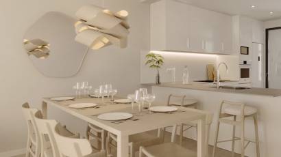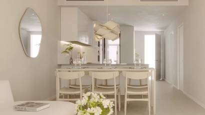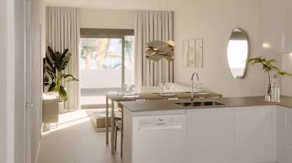 Het interieur van de woningen is ontworpen om maximaal comfort en functionaliteit te bieden. De vloeren van porseleinen tegels geven een vleugje elegantie en zijn gemakkelijk te onderhouden. Alle eigendommen zijn uitgerust met airconditioning, wat het hele jaar door een aangename sfeer garandeert. Moderne apparaten maken het dagelijks leven gemakkelijker, terwijl ingebouwde kasten efficiënte en georganiseerde opslag bieden. De indeling van de woningen is ontworpen om de ruimte te optimaliseren, met ruime woonruimtes die naadloos integreren met de terrassen, waardoor er een continue stroom ontstaat tussen binnen en buiten.