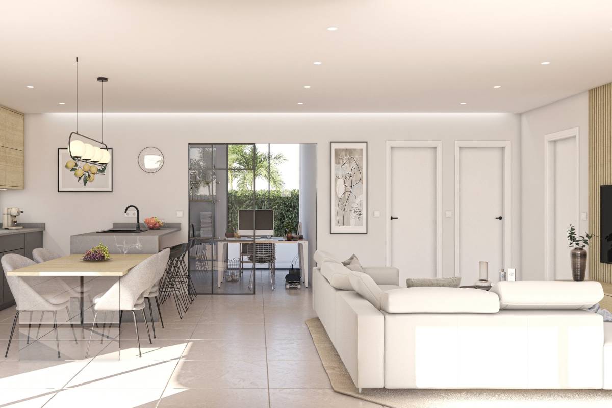 Het interieur van deze vrijstaande woningen is ontworpen met oog voor detail en materialen van hoge kwaliteit. De porseleinen tegelvloeren geven elke kamer een vleugje elegantie en duurzaamheid. De woningen beschikken over drie slaapkamers en twee badkamers, wat een comfortabele en functionele ruimte biedt voor het hele gezin. Ingebouwde kasten zorgen voor efficiënte opslag, terwijl de pre-installatie van airconditioning het hele jaar door comfort garandeert. Elektrische rolluiken en inbegrepen apparatuur maken het huis modern en goed uitgerust.