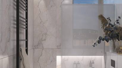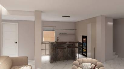 Het interieur van het chalet is ontworpen met oog voor comfort en functionaliteit. Met vier slaapkamers vindt elk gezinslid zijn persoonlijke ruimte. De drie badkamers zijn efficiënt verdeeld om maximaal comfort te garanderen. De airconditioning zorgt voor een koele en aangename sfeer tijdens de warmere maanden. Ingebouwde kasten optimaliseren niet alleen de ruimte, maar dragen ook bij aan het behoud van de orde en esthetiek van het huis. De vloer van porseleinen tegels is een elegante keuze die een moderne touch aan het interieur toevoegt.
