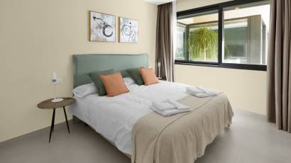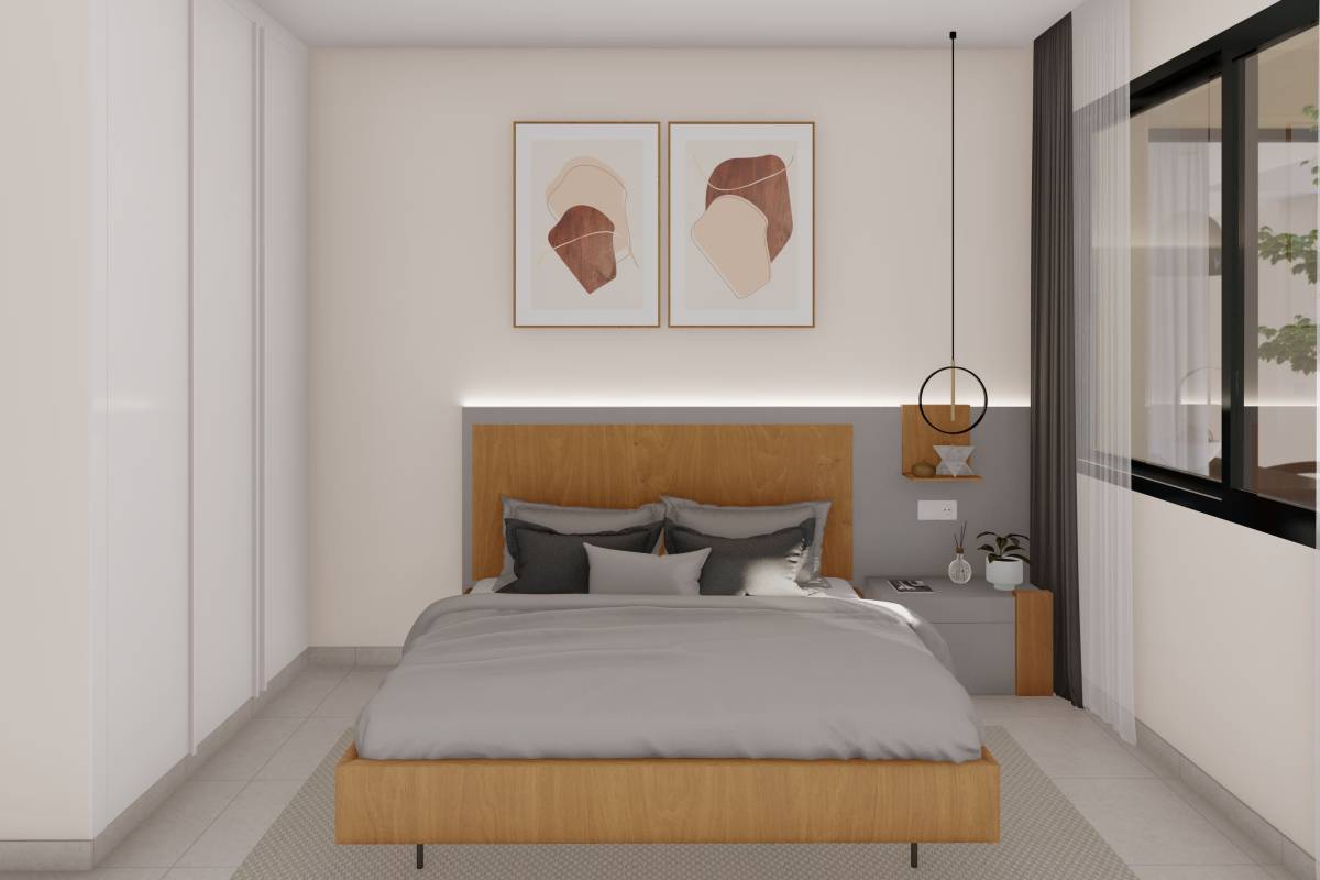 Het interieur van de woningen weerspiegelt een modern en functioneel ontwerp. De porseleinen tegelvloeren geven een vleugje verfijning en zijn gemakkelijk te onderhouden, ideaal voor dagelijks gebruik. De airconditioning zorgt voor comfort in alle seizoenen. Ingebouwde kasten bieden praktische en elegante opbergoplossingen, waardoor de ruimte in elke kamer wordt geoptimaliseerd. De indeling omvat een garage, die veiligheid en gemak biedt voor het parkeren van voertuigen. Deze interieurkenmerken zijn ontworpen om een gezellige en functionele woning te bieden.