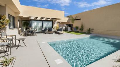 De buitenruimtes van deze vrijstaande woningen in Murcia zijn ontworpen om optimaal te genieten van het mediterrane klimaat. Elke woning heeft een privé tuin, ideaal om een persoonlijke oase van rust te creëren. Bovendien bieden de terrassen een perfecte ruimte om te ontspannen of te genieten van maaltijden in de open lucht. De toevoeging van een pergola voegt een vleugje elegantie en functionaliteit toe, die schaduw en stijl biedt. Voor degenen die van zwemmen houden of gewoon willen ontspannen bij het water, is het privézwembad een luxe die niet over het hoofd mag worden gezien. Deze buitenkenmerken zijn ontworpen om een ongeëvenaarde buitenlevensstijl te bieden.