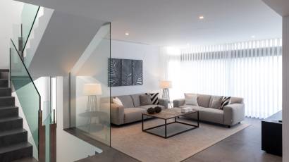 Binnen zijn de woningen uitgerust met porseleinen tegelvloeren, die duurzaamheid en een elegante afwerking bieden. Technologie speelt een centrale rol, met een domoticasysteem dat efficiënte controle over verschillende aspecten van de woning mogelijk maakt. De airconditioning zorgt het hele jaar door voor comfort, terwijl inbouwkasten de opbergruimte optimaliseren. De indeling biedt opties van 2 tot 4 slaapkamers en van 2 tot 3 badkamers, aangepast aan verschillende gezinsbehoeften. Bovendien voegt de video-intercom een extra niveau van veiligheid en gemak toe.