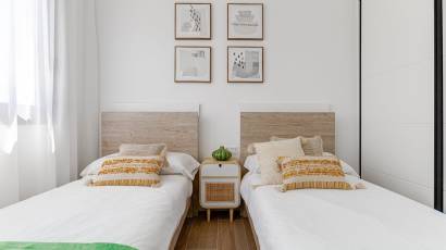 Het interieur van deze vrijstaande woningen is ontworpen om comfort en functionaliteit te maximaliseren. De keramische vloeren geven een moderne uitstraling en zijn gemakkelijk te onderhouden. De keuken is uitgerust met hoogwaardige apparatuur, wat dagelijkse taken vergemakkelijkt. Elektrische rolluiken en een video-intercom voegen een extra niveau van comfort en veiligheid toe. Ingebouwde kasten bieden efficiënte opslagruimte, terwijl de pre-installatie van airconditioning zorgt voor een aangename temperatuur het hele jaar door.