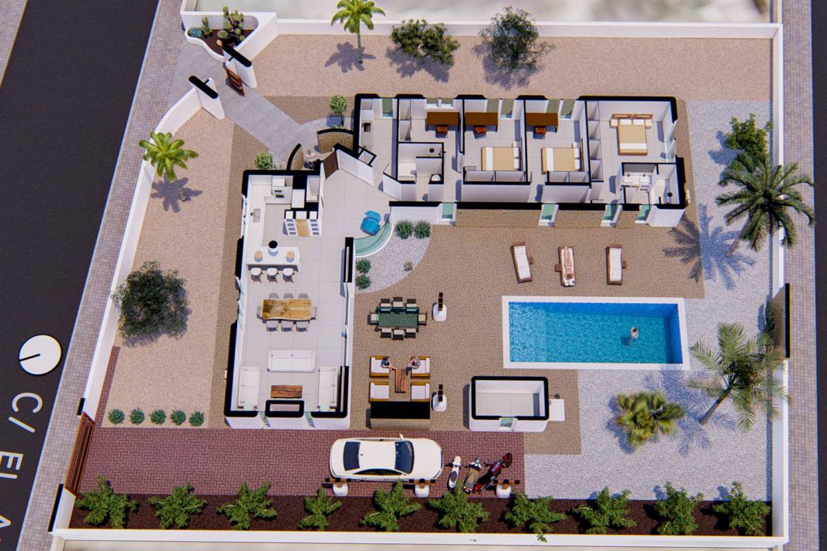 De buitenkant van deze vrijstaande woning in Alfaz del Pi is ontworpen om optimaal te genieten van het mediterrane klimaat. Het beschikt over een prachtige tuin, ideaal om te ontspannen of te genieten van buitenactiviteiten. Het terras is een perfecte plek voor diners in de open lucht of gewoon om te genieten van het uitzicht en de natuurlijke omgeving. Bovendien omvat de woning een privézwembad, wat een persoonlijke oase biedt om af te koelen tijdens de warme zomerdagen. De pergola voegt een vleugje elegantie toe en biedt schaduw, waardoor een gezellige buitenomgeving ontstaat.