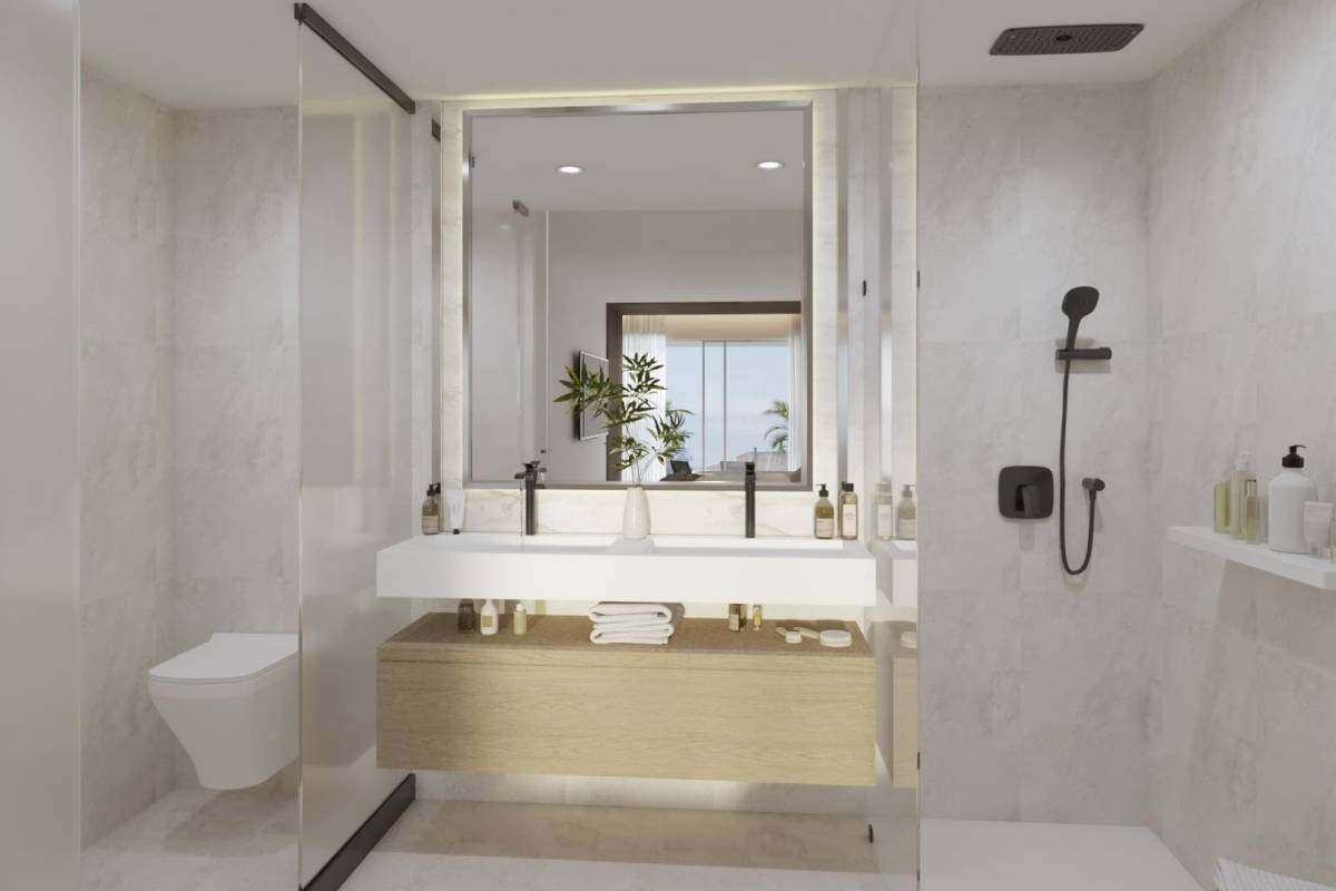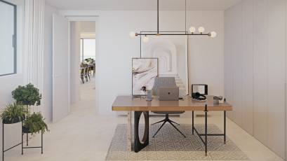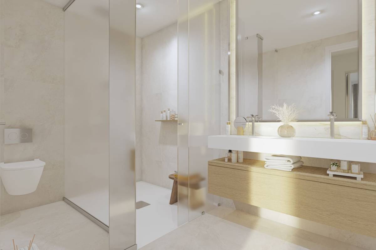 Het interieur van de villa's is ontworpen met een focus op comfort en moderne technologie. De porseleinen tegelvloeren geven een vleugje elegantie en duurzaamheid. De villa's zijn uitgerust met een domoticasysteem dat het mogelijk maakt om verschillende aspecten van het huis efficiënt te beheren. Elektrische rolluiken en de video-intercom voegen een extra niveau van comfort en veiligheid toe. Vloerverwarming zorgt voor een warme sfeer tijdens de koudere maanden. De keukens zijn volledig uitgerust met moderne apparatuur en de inbouwkasten bieden veel opbergruimte. De indeling omvat opties van 3 of 4 slaapkamers en 3 badkamers, aangepast aan verschillende gezinsbehoeften.