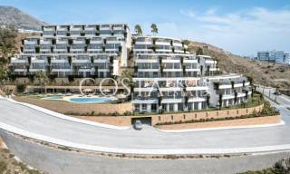 Het exterieurontwerp van de villa's in Fuengirola valt op door de integratie met de natuurlijke omgeving. Elke villa heeft een privétuin, perfect om te genieten van het mediterrane klimaat. De ruime terrassen bieden een ideale ruimte om te ontspannen of gasten te ontvangen, terwijl het solarium een exclusieve plek biedt om in volledige privacy van de zon te genieten. De nabijheid van de zee, op slechts 1 km, maakt het mogelijk om vanuit verschillende buitenruimtes van de woning te genieten van panoramisch zeezicht. Bovendien heeft elke villa een eigen garage, wat comfort en veiligheid voor de bewoners garandeert.
