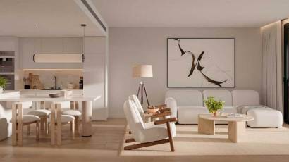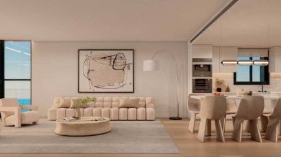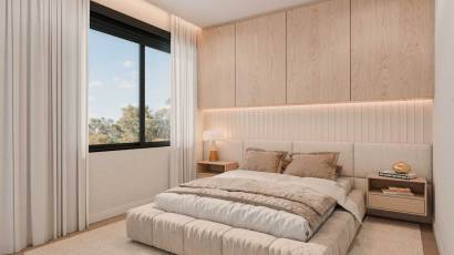 Het interieur van de woningen is zorgvuldig ontworpen om maximaal comfort en functionaliteit te bieden. De appartementen, begane grond en penthouses zijn beschikbaar in configuraties van 1, 2 en 3 slaapkamers, met opties van 1, 2 en 3 badkamers, aangepast aan de behoeften van verschillende soorten gezinnen. De woningen zijn uitgerust met porseleinen tegelvloeren, die duurzaamheid en stijl combineren. De opname van moderne apparaten en een domoticasysteem zorgt ervoor dat elk huis is voorbereid op de eisen van het hedendaagse leven. Ingebouwde kasten bieden efficiënte opslag, waardoor de ruimtes netjes en rommelvrij blijven. Bovendien heeft elke woning een garage, wat comfort en veiligheid biedt voor de bewoners.