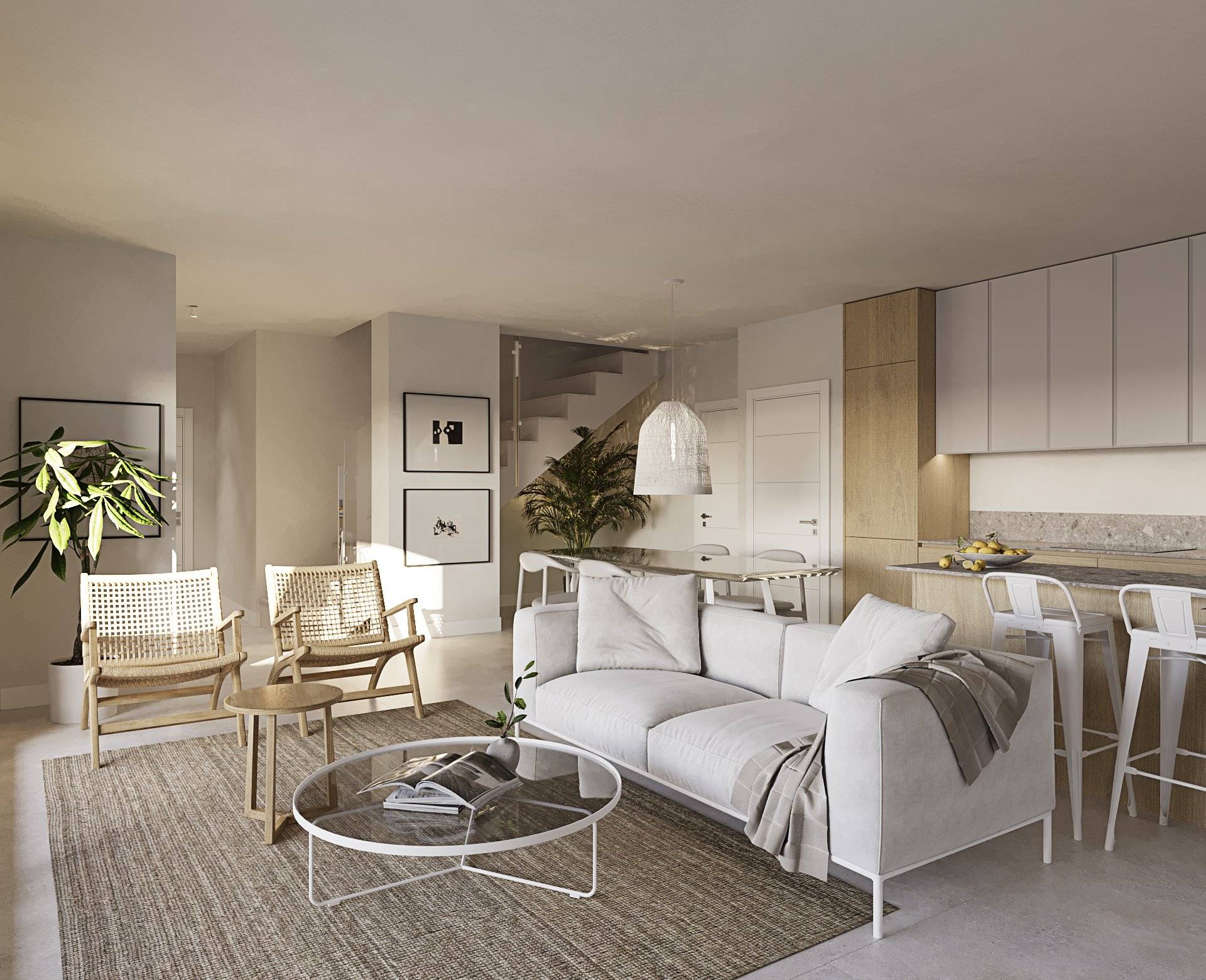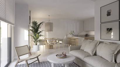 Het interieur van de woningen is zorgvuldig ontworpen om maximaal comfort te bieden. De appartementen, begane grond en penthouses zijn uitgerust met porseleinen tegelvloeren, die een moderne en elegante uitstraling geven. Alle eigendommen zijn voorzien van hoogwaardige apparatuur en ingebouwde kasten, die de ruimte en functionaliteit optimaliseren. De indeling van de woningen varieert van 2 tot 3 slaapkamers en 2 of 3 badkamers, aangepast aan de behoeften van elke familie. Bovendien beschikken ze over een video-intercom, die veiligheid en gemak garandeert.