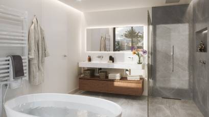 De buitenruimtes van dit wooncomplex in Reinoso zijn ontworpen om het comfort en het plezier van de bewoners te maximaliseren. De woningen beschikken over ruime terrassen die het hele jaar door genieten van het mediterrane klimaat mogelijk maken. Bovendien bieden de solariums die in sommige typen beschikbaar zijn een ideale ruimte om te zonnebaden of te genieten van een diner in de buitenlucht met uitzicht op de natuurlijke omgeving. De begane grond heeft privétuinen, die een oase van rust en privacy bieden. De nabijheid van de zee, op slechts een kilometer afstand, maakt het mogelijk om te genieten van kustwandelingen en wateractiviteiten, waardoor dit een ideale plek is voor natuurliefhebbers en buitenactiviteiten.