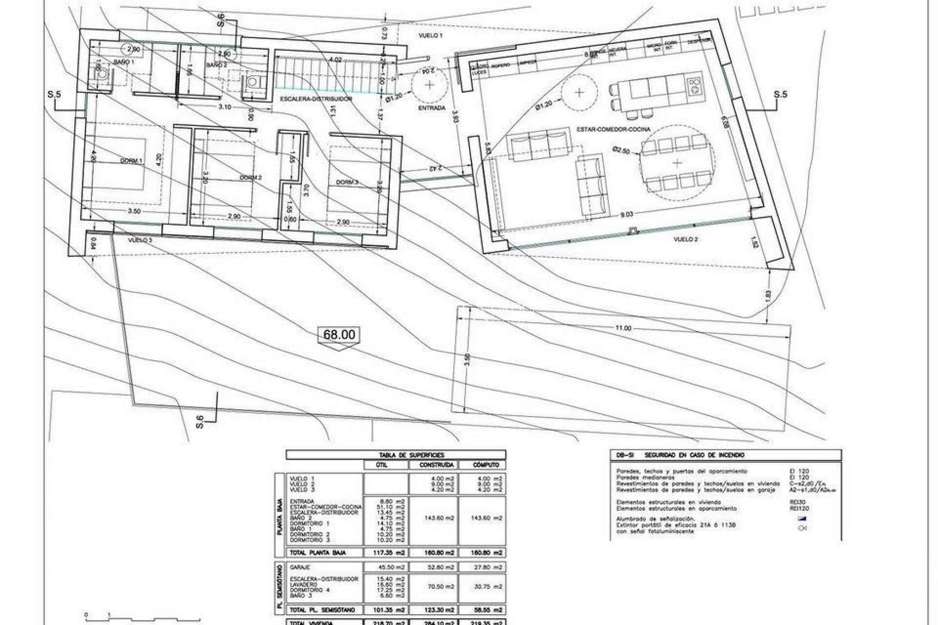 De villa is verdeeld over twee verdiepingen. Op de begane grond is er een garage met ruimte voor 2 auto's en een directe toegang deur naar het interieur, waar zich een slaapkamer met en-suite badkamer en kleedkamer, een wasruimte, een toilet en een spa-gedeelte voor ontspanning en recreatie bevindt. Een interne trap leidt naar de bovenverdieping, waar zich een entreehal, een moderne volledig uitgeruste open keuken en een ruime woonkamer/eetkamer bevinden, met directe toegang tot het terras en het zwembad. Aan de andere kant van deze verdieping is de slaapzone met drie slaapkamers, de hoofdslaapkamer met en-suite badkamer en de andere twee slaapkamers die een badkamer delen. Alle slaapkamers hebben directe toegang tot het zwembadterras via hoogwaardige schuiframen. De keuken is uitgerust met hoogwaardige apparaten zoals een oven, magnetron, bordenwarmer, twee gecombineerde koelkasten met vriezer, vaatwasser en een in het plafond ingebouwde afzuigkap boven de kookplaat. Er zijn ook vloer-tot-plafond kasten, lades, hoge kasten, niches met LED-verlichting en een aparte kookeiland. De wasruimte is voorzien van een gootsteen, wasmachine, droger, waterontharder, een 250-liter warmtepompboiler en een inertie tank. Bovendien is de villa voorzien van airconditioning met zowel warme als koude lucht door kanalen, met onafhankelijke thermostaten in elke kamer en vloerverwarming op basis van een laag verbruik warmtepomp door de hele villa. De villa is uitgerust met aluminium buitenschrijnwerk met thermische onderbreking en uitstekende thermische en akoestische isolatie. Er zijn gemotoriseerde rolluiken of jaloezieën in de slaapkamers en het glaswerk is van lage-emissiviteit glas voor uitstekende thermische isolatie, hoge lichttransmissie en bescherming tegen zonnestraling. De binnendeuren zijn van Etimoe fineerhout op de bovenverdieping en wit gelakt op de begane grond, met verborgen scharnieren en magnetische sloten. De badkamers zijn uitgerust met hoogwaardige sanitaire voorzieningen, thermostatische douches met regeneffect en niches met RGB LED-verlichting. Bovendien heeft het huis een voorbereidingssysteem voor een binnen- en buitens alarmsysteem, halogeenverlichting en lampen binnen en buiten, TV- en internetinstallaties in de belangrijkste kamers, een fotovoltaïsch systeem en een verwarmd zwembad met automatische dekking, RGB LED-verlichting en een warmtepomp. De tuin is onderhoudsvriendelijk en het warme water wordt geleverd door aerothermische verwarming in combinatie met een zonnepaneel. Er zijn twee deuren, één voor voetgangers met videophone en één voor gemotoriseerde voertuigen, en de toegang tot de garage en de parkeerplaats is betegeld met antislip klinkers. Het spa-gedeelte heeft ramen binnen het zwembad, binnenverlichting met RGB en halogeen, een voorbereidingssysteem voor een jacuzzi, een bar, een TV/cinema-gedeelte en ruimte voor een biljarttafel. De villa ligt in een van de mooiste woonwijken van de Costa Blanca. De steden Calpe, Benissa en Moraira bieden een uitzonderlijk aantrekkelijk kustgebied van groot landschappelijk en ecologisch belang, met een ruige kustlijn en talloze stranden en verborgen baaien. Op slechts 1,5 km van deze uitzonderlijke woning ligt Playa de la Fustera, een zandstrand tussen de Les Basetes jachthaven en Cala Pinets. Dit strand heeft de "Blauwe Vlag" gekregen als erkenning voor de kwaliteit van het water en de vele beschikbare diensten, zoals de promenade, wandelpaden, toegang voor gehandicapten, een speeltuin, sportfaciliteiten, een Rode Kruis-post, bushaltes, parkeerplaatsen, maritieme bewaking, cafés en restaurants.