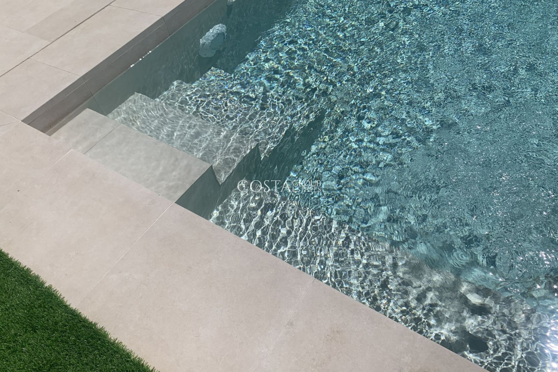 We zijn verheugd om exclusief deze prachtige villa aan te bieden die bijna nieuw is en op slechts 500 meter van het strand ligt. De woning is slechts 5 maanden oud en helaas verhuizen de eigenaren wegens onvoorziene omstandigheden. De eigenaren hebben veel extra's toegevoegd aan de oorspronkelijke bouw. De woning is L-vormig, heeft 3 slaapkamers en 2 badkamers, een mooie open woonkamer, een enorm solarium en een groot terras aan de voorzijde op het zuiden waar zich het zwembad bevindt en een terras aan de achterzijde op het noorden voor een koelere eethoek voor de warme zomeravonden. U komt de woning binnen in een hal op de hoek van de L-vorm, de ene weg leidt naar de open plan leefruimte en de andere naar de slaapkamers. Er zijn 3 tweepersoonsslaapkamers en 2 badkamers. De gastenbadkamer heeft een inloopdouche en ingebouwde wastafel. De hoofdslaapkamer baadt in het licht en heeft openslaande deuren naar de tuin, een kleedruimte en een en-suite badkamer met inloopdouche. De tweede tweepersoonsslaapkamer heeft ook openslaande deuren naar de tuin en inbAan de andere kant van het pand komen we in de prachtige keuken met een groot aantal kasten en mooie donkere werkbladen. De ingebouwde kasten gaan met een lichte aanraking open en dicht, in de achterwand zijn de oven en de magnetron ingebouwd. Er is een inductiekookplaat en een ingebouwde vaatwasser en koelkast met vriesvak. Naast de keuken komt een bijkeuken voor de wasmachine en de wasdroger en nog steeds met extra ruimte voor opslag. Een ontbijtbar scheidt de keuken van het eetgedeelte dat uitkomt in de zitkamer. Deze kamer is zo licht en luchtig met een muur van vloer tot plafond glazen schuifdeuren die leiden naar de patio en het zwembad, de andere kant van de kamer heeft een andere grote glazen schuifdeur naar een ander terras dat een geweldige setting zou kunnen zijn voor een buiteneettafel. Alle ramen en glazen deuren hebben rolluiken en de grote glazen hoofddeuren hebben een elektrisch oprolbaar zonnescherm waardoor de zitkamer koel blijft of het terras wordt afgeschermd van de hete zon. Alle kamers hebben airconditioning die zowel warme als koude lucht levert. Buiten is er een oprit waarvan de poort geëlektrificeerd is en op afstand kan worden geopend en waar met gemak 2 auto's in passen. Naast deze ruimte is een afsluitbare opslagruimte. Het terras aan de voorzijde is zeer groot, gelegen op het zuiden en heeft een privé zwembad. Het gebied aan de achterzijde van het pand is een aangewezen eethoek en hier vinden we de trap naar de 2 solariumruimtes die ongeveer 65m2 beslaan en al zijn uitgerust met water en elektriciteit, zodat een zomerkeuken gemakkelijk kan worden geïnstalleerd. Dit solarium is een ideale plek om te zitten en te genieten van het prachtige uitzicht op zee en de prachtige zonsondergangen. Dit huis is prachtig ingericht en gebouwd met de grootste aandacht voor detail en kwaliteit. Het is een prachtig huis en zou een geweldige permanente woning of een